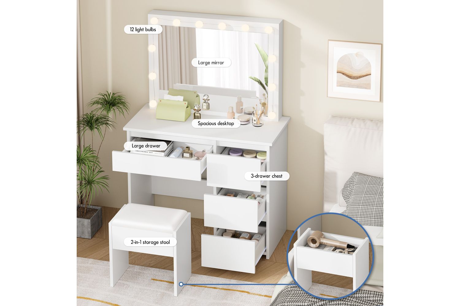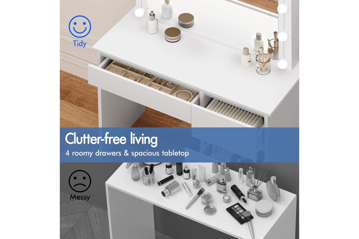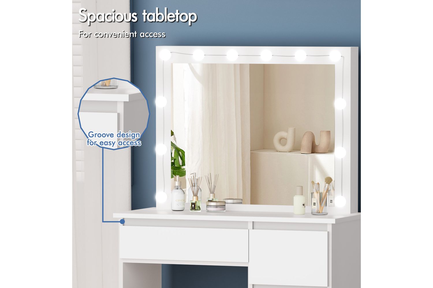 - Spacious 90cm tabletop for all your beauty essentials
