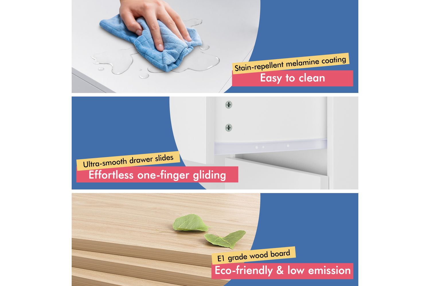 - Sleek white melamine finish to suit any décor