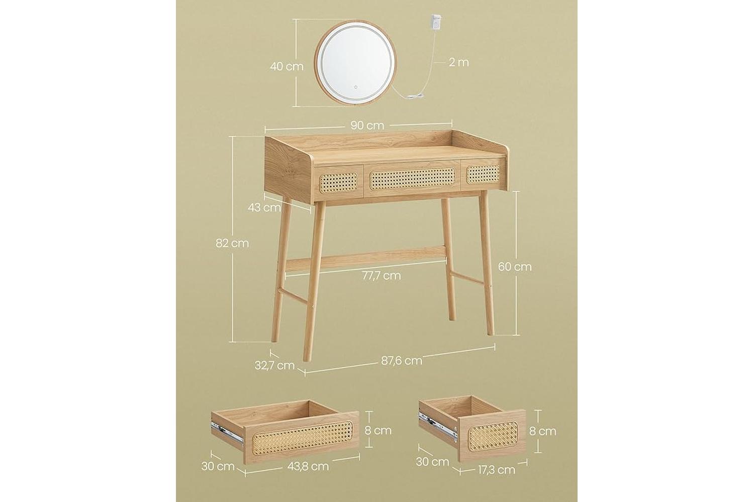 Organisation is effortless with multiple drawers, each designed to hold up to 10 kg, making it easy to store everything from jewellery to hair tools. The sturdy platform supports up to 100 kg, offering a reliable and secure space for your daily beauty rituals. With its compact dimensions of 43 x 90 x 82 cm, this dressing table fits comfortably in bedrooms of all sizes, making it ideal for Irish homes where space is at a premium.