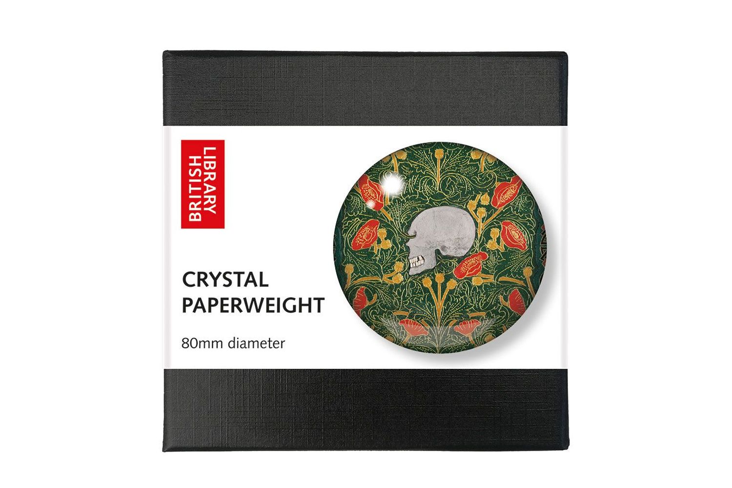 Bring a touch of creative flair to your workspace or home with the Skull Flowers Paperweight from The British Library. This striking glass crystal paperweight is more than just a practical accessory—it is a unique piece of art that blends the bold imagery of a skull with the delicate beauty of flowers. Perfect for those who appreciate distinctive home décor, this paperweight is designed to keep your papers organised while adding a stylish statement to any desk, study, or creative space.