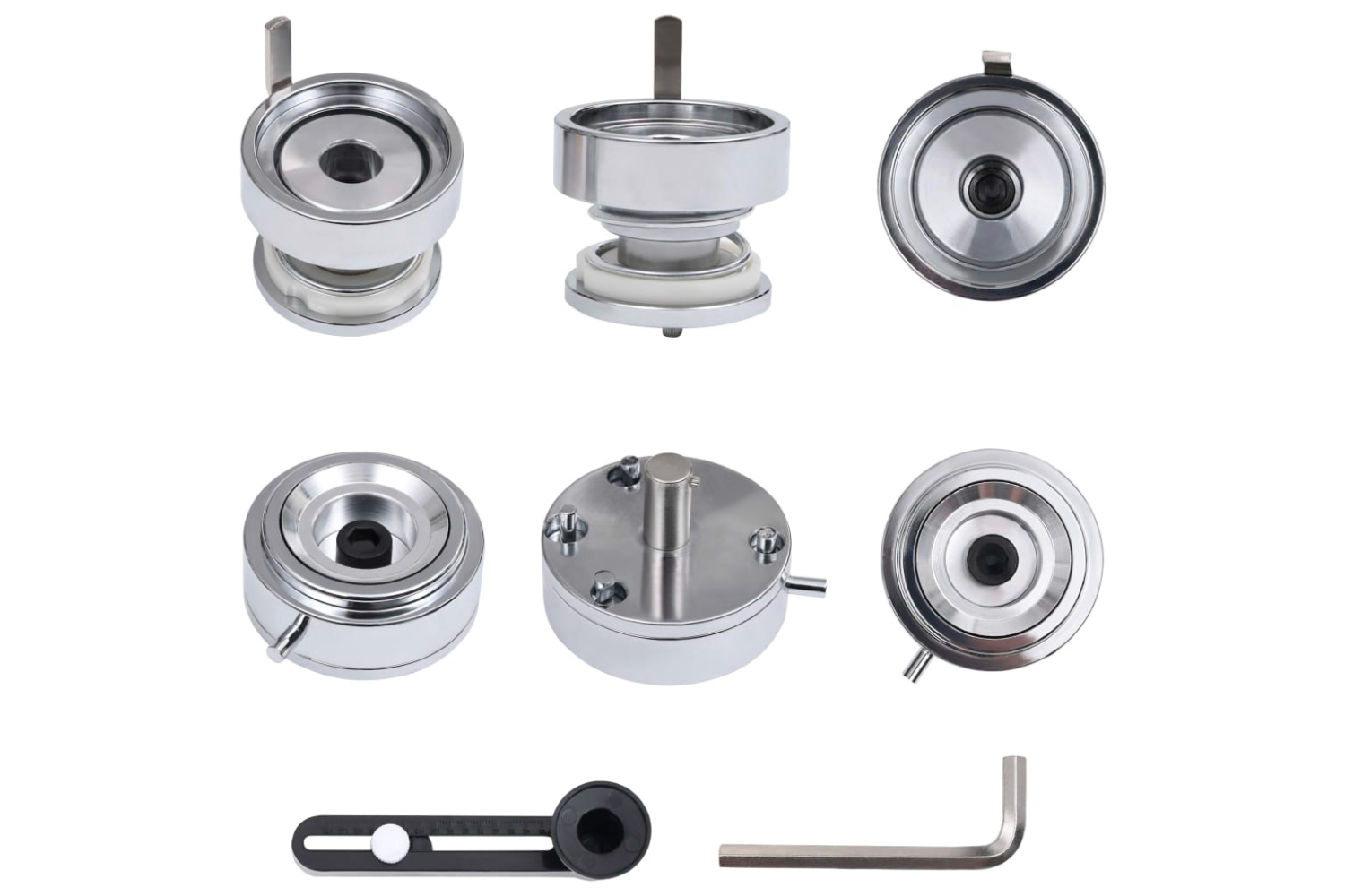 This button maker machine comes with a set of dies that fit for making 58 mm button badges. The design of the 'positive stop' ensures upper and lower die alignment. The slide base is designed for more accurate and fast slide track operation. The textured hand grip is user-friendly, and requires only a little force to make a button, making the machine very easy to operate. Additionally, delivery includes the circle cutter so you can adjust the cutting diameter according to specific needs.