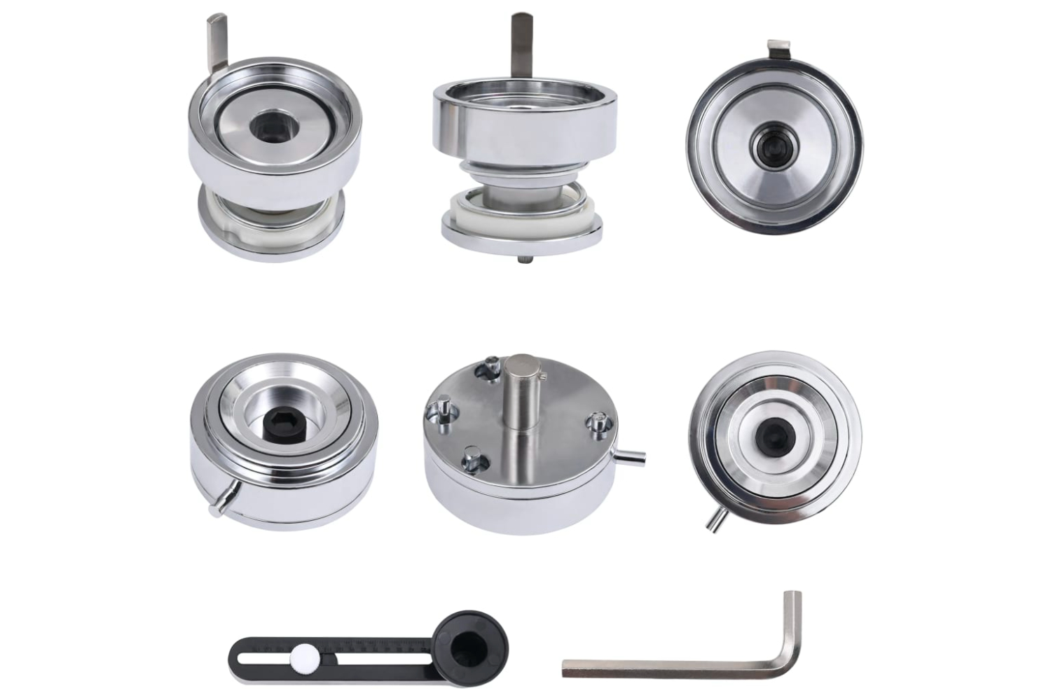 The button maker machine comes with a set of dies, fit for making 44 mm button badges. Delivery contains 500 sets of 44 mm circle button parts, each set with metal shell, mylar film and pin back. The rotating base allows you to move the dies more accurate and fast. The textured hand grip is user-friendly and requires a light force to make a button, making the machine very easy to operate. Additionally, delivery includes the circle cutter so you can adjust the cutting diameter according to specific needs.