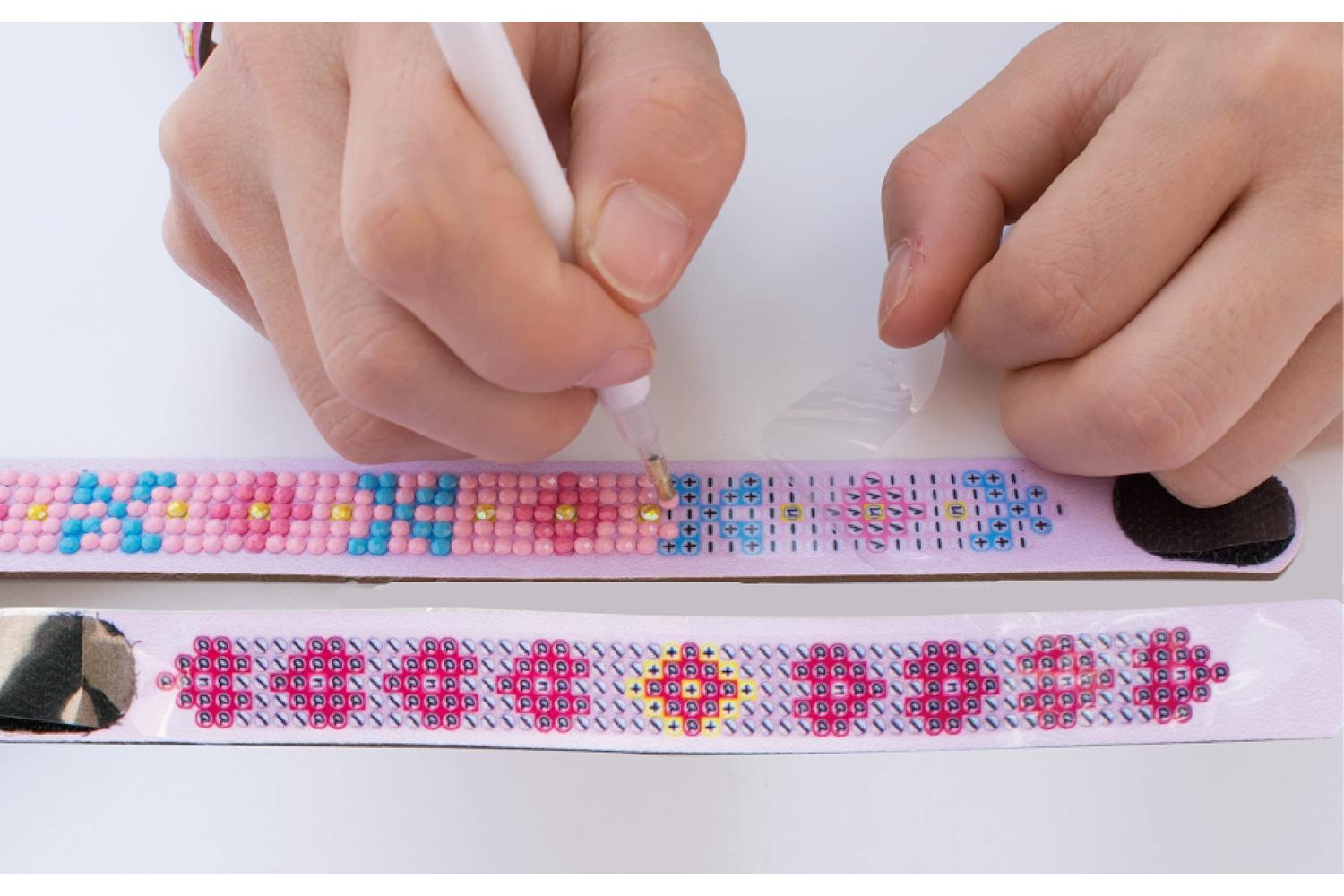 • 3 sparkle fabric bracelets with fasteners, ready to decorate with Diamond Dotz, pre-sorted by shade