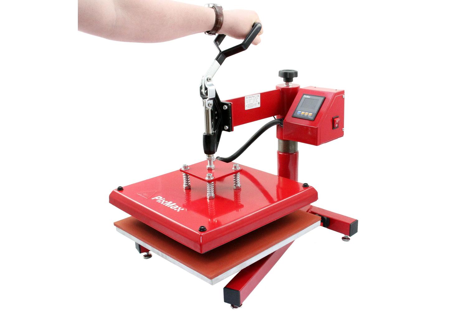 The MONSTERSHOP 10314 - PixMax 38cm x 38cm Swing Heat Press Machine is a powerful tool from MONSTERSHOP, designed to transform your creative energy into stunning, wearable art. Ideal sublimation tool for arts and crafts enthusiasts, this machine puts you in the driver's seat, allowing you to make your mark with sublimation ink transfers and vinyl on a broad range of materials such as t-shirts, safety clothing, and more.