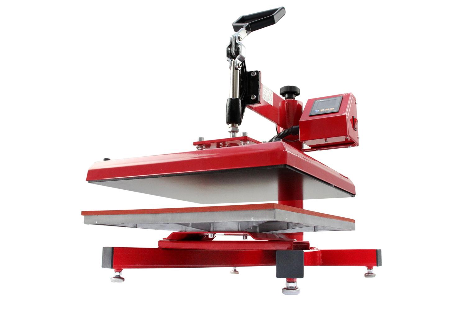 Featuring a comfort grip handle, a red powder-coated steel frame, and an alloy heat plate, this machine is as durable as it is user-friendly. Some common keywords that potential customers may use when searching for this product are swing heat press, heat press machine, sublimation press, and MONSTERSHOP heat press.