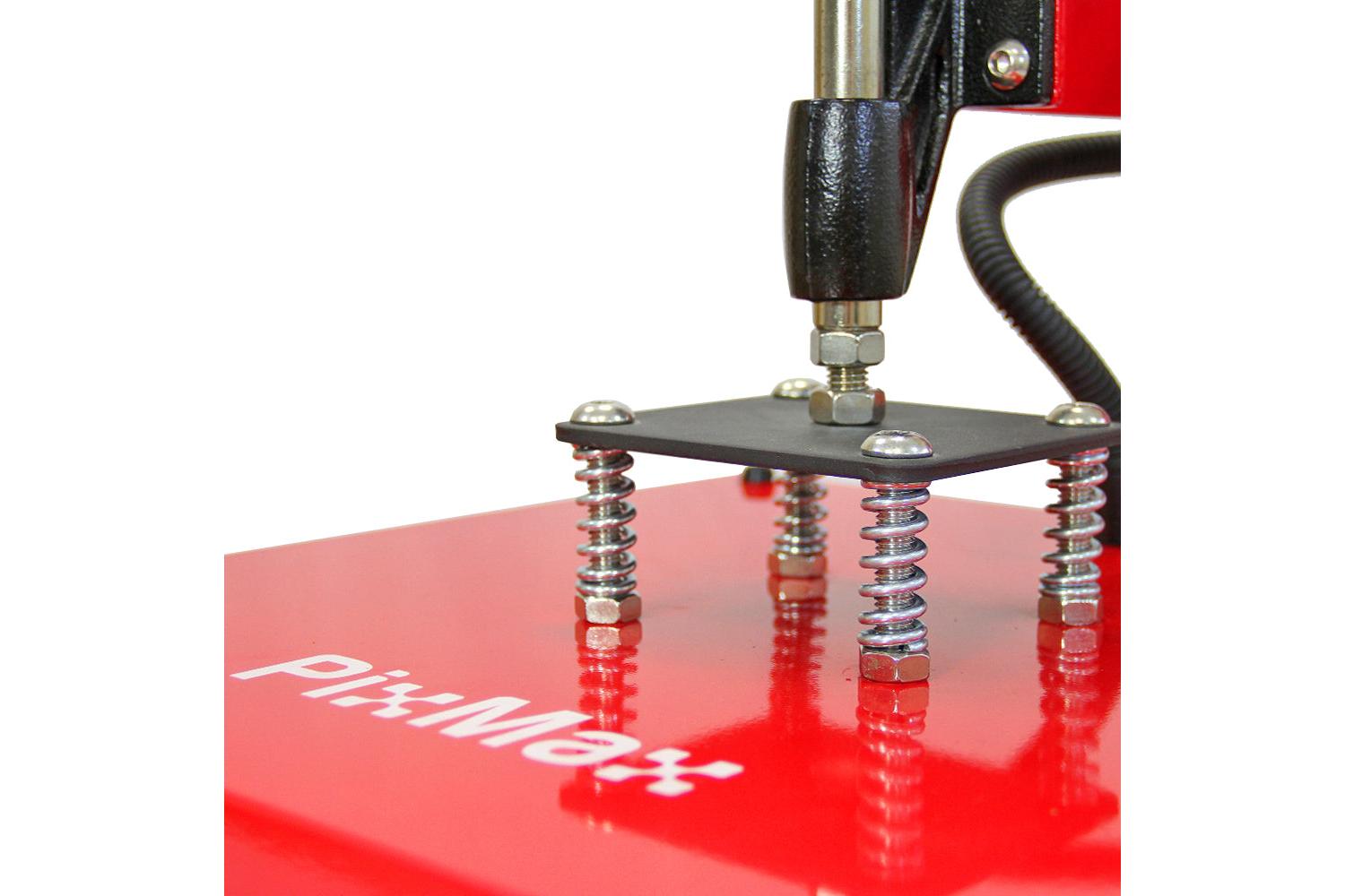 Your designs are no longer confined to normal A4 size. Thanks to the ingenious swing heat machine design, the PixMax 38cm x 38cm press opens up a world of possibilities for designs even larger than A4 on your choice of flat surfaced polyester, poly-mix or polymer-coated objects.