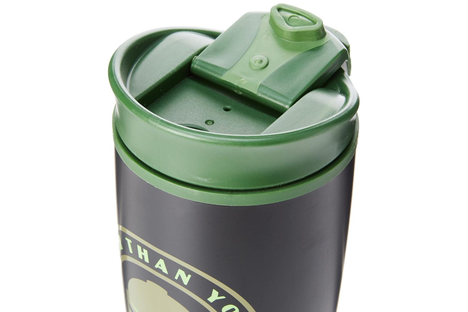 Designed, printed, and hand-finished in the UK, this large insulated mug with a lid is perfect for enjoying a reviving tea, coffee, or hot chocolate after bounty missions.
