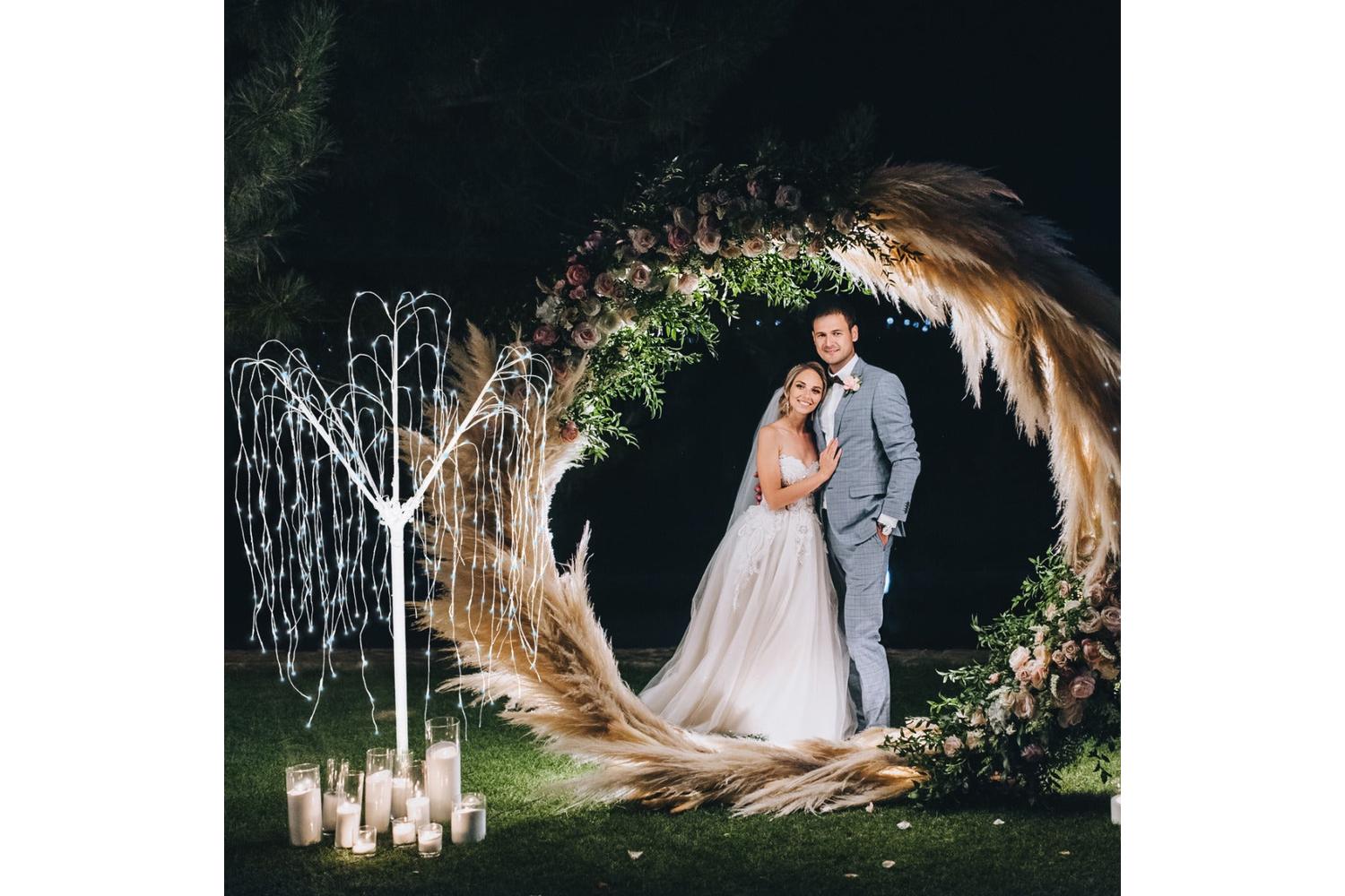 Turn your wedding dreams into reality with the stunningly elegant MONSTERSHOP 29323 - Wedding Moongate & Weeping Willow Tree. Instantly captivating, the Silver Moongate, with its superior aluminium oxide construction contains a tantalising chip-resistant silver finish. This majestically stands 210cm tall and 200cm wide, offering ample space for personal touches. Infuse your personality, experimenting with limitless arrangements of flowers, drapes, and balloons.