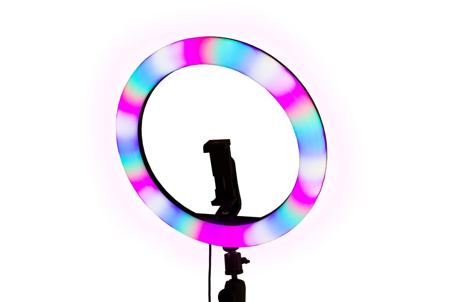 Impeccably lit footage is ensured with an RGB LED ring light offering three white shades, twelve dimmable settings and over 40 RGB light options. All these light effects easily adjusted via remote control.