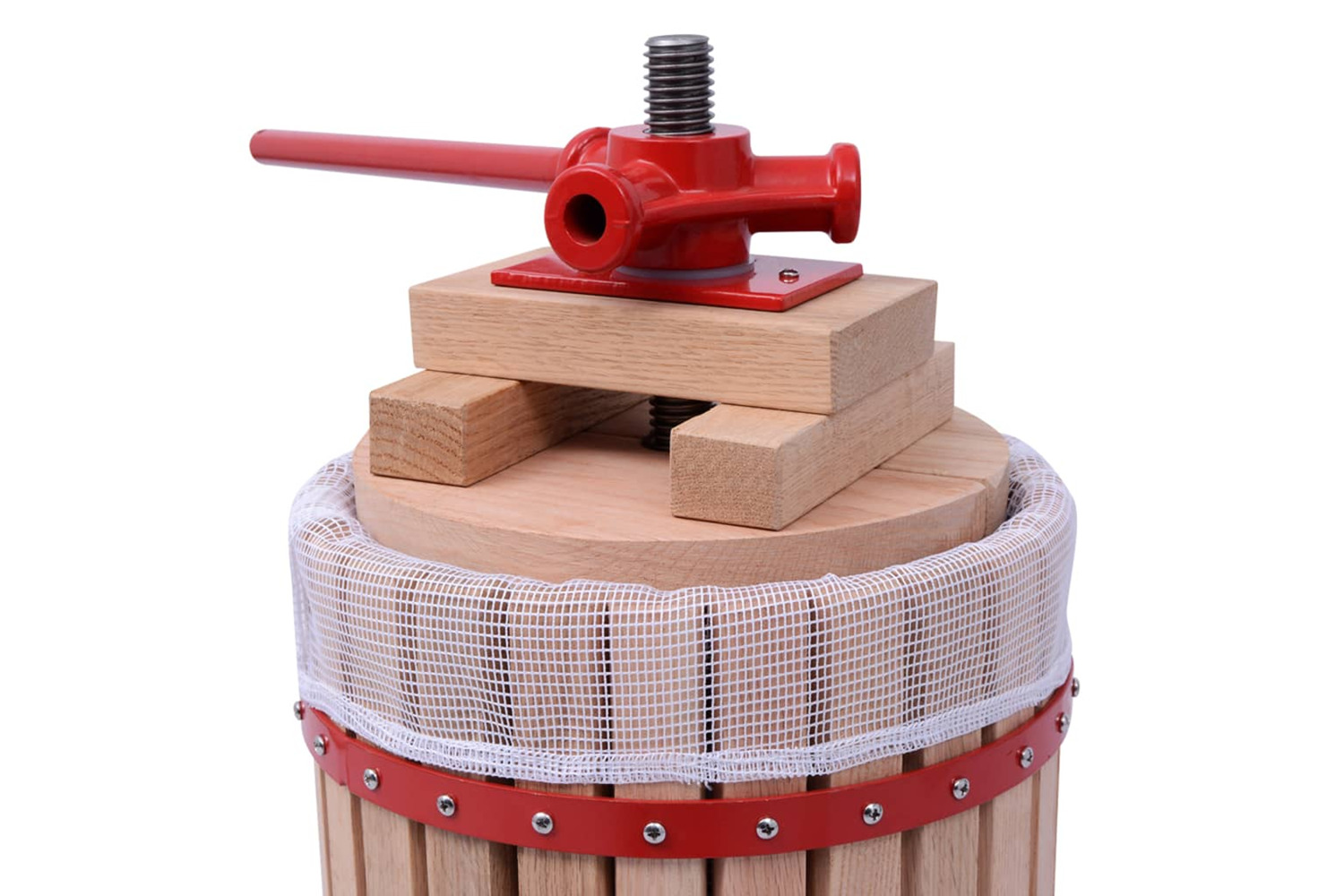 The set features easy one-person operation: simply load it with fruits and rotate the handle! The press's solid oak wood cask is maintenance free while the cast iron hardware is rust resistant. The wooden basket sits on top of a powder-coated steel base with pouring spout. As for crusher, which is made of steel, it stands out with its durability and user-friendly characteristics. The heavy-duty construction ensures that both press and crusher can withstand plenty of hard use. Both press and crusher are easy to assemble.