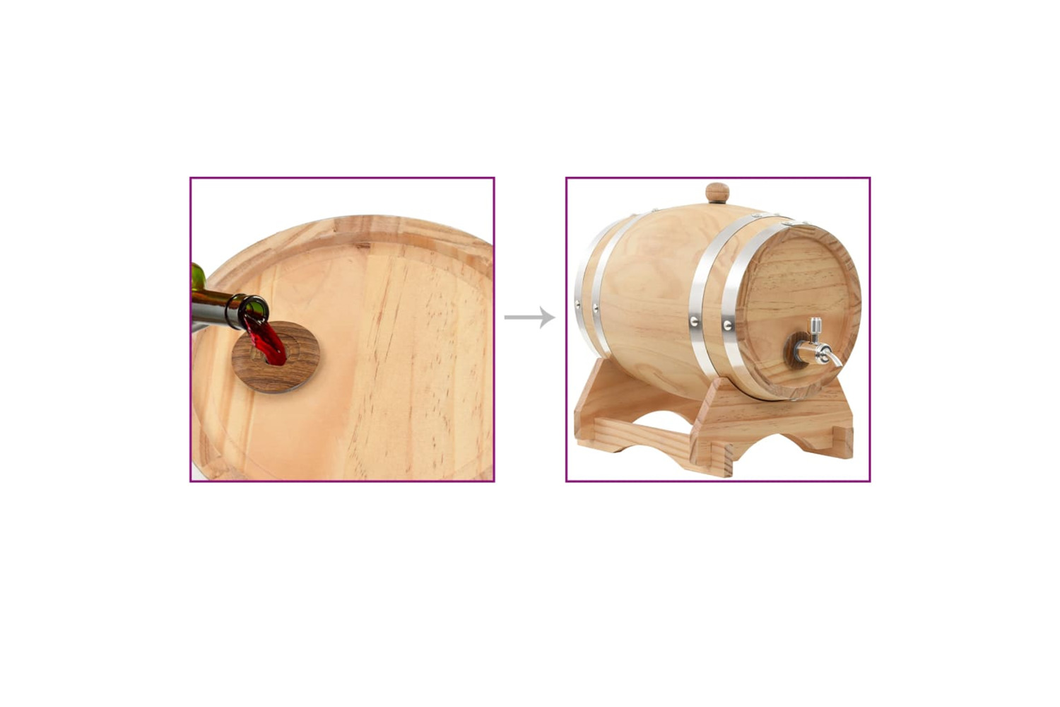 - Material: Solid pinewood + alloy hoops + stainless steel tap