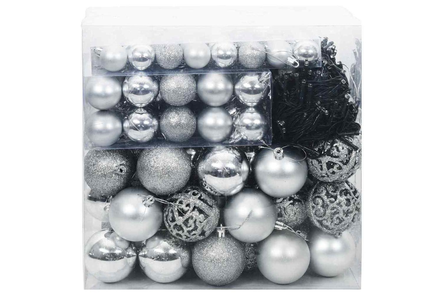 - Efficient LED Lighting This Christmas Bauble Set incorporates LED string lights, offering both energy efficiency and vibrant illumination. The lights deliver a soft, soothing glow that enhances the festive atmosphere without burdening your power consumption, making it both eco-conscious and budget-friendly.