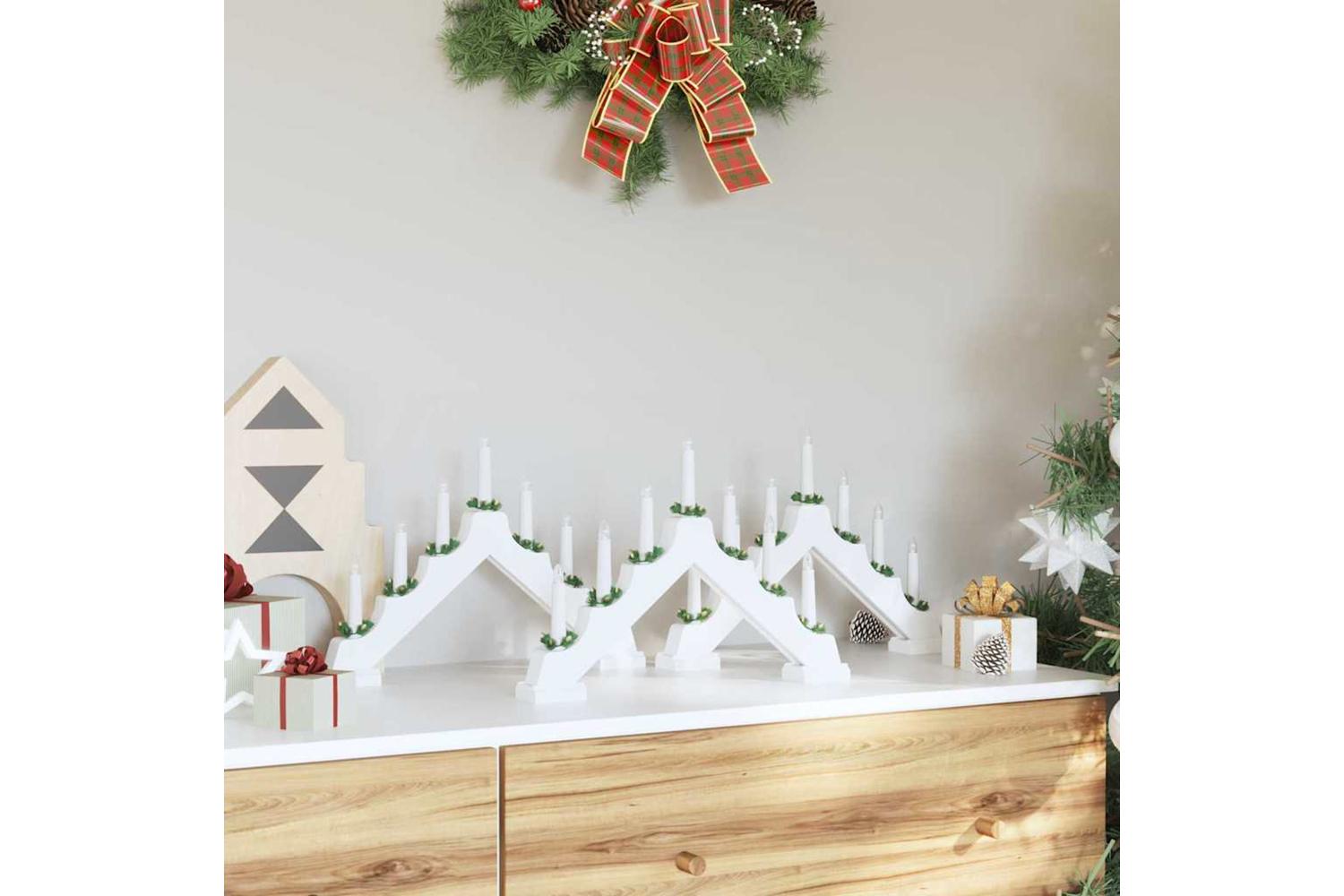 - Materials: Constructed from solid pine wood, this Christmas Candle Bridge showcases a beautiful, natural finish that enhances its traditional charm. The pine wood extends throughout the entire piece, ensuring strength and resilience through the holiday season and beyond. This selection of material pairs durability with visually pleasing aesthetics, making it a treasured holiday fixture for your living or dining room.