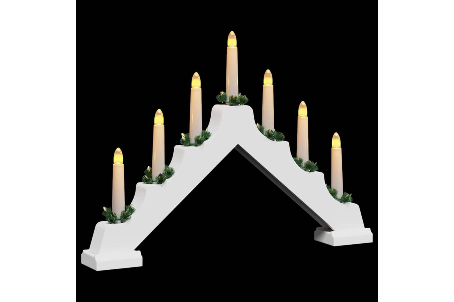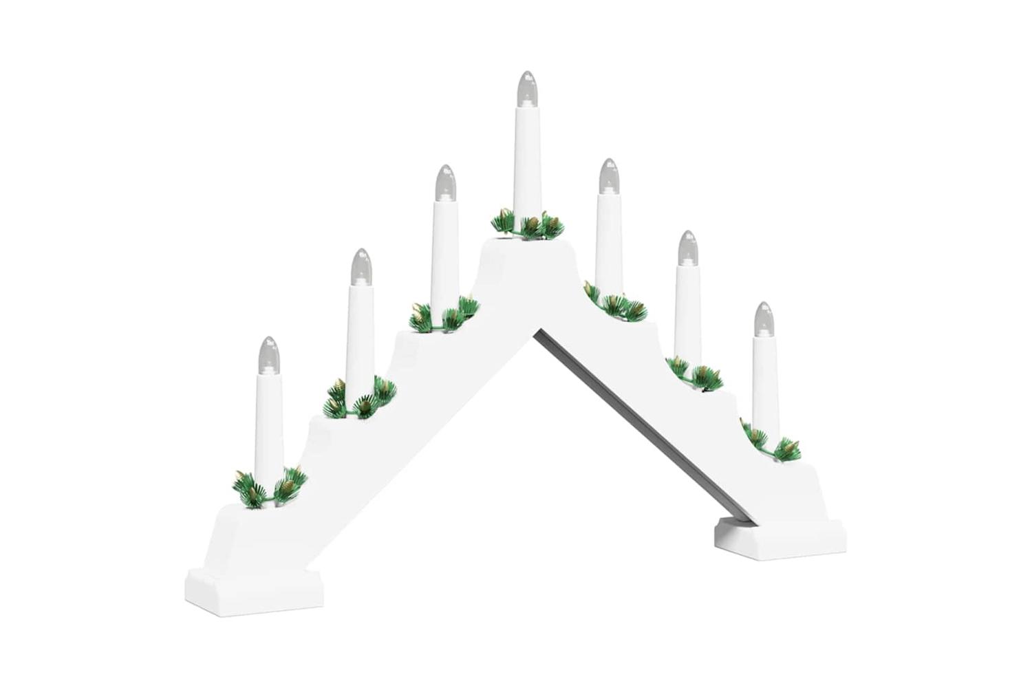 - Included Components: Featuring seven LED candles, each encased in a beautifully crafted pine wood arch, and powered by batteries. The LED lights offer an energy-efficient alternative to conventional lighting, delivering a warm, inviting glow. Coupled with a toggle switch, this allows effortless operation, bringing convenience to both set-up and enjoyment.