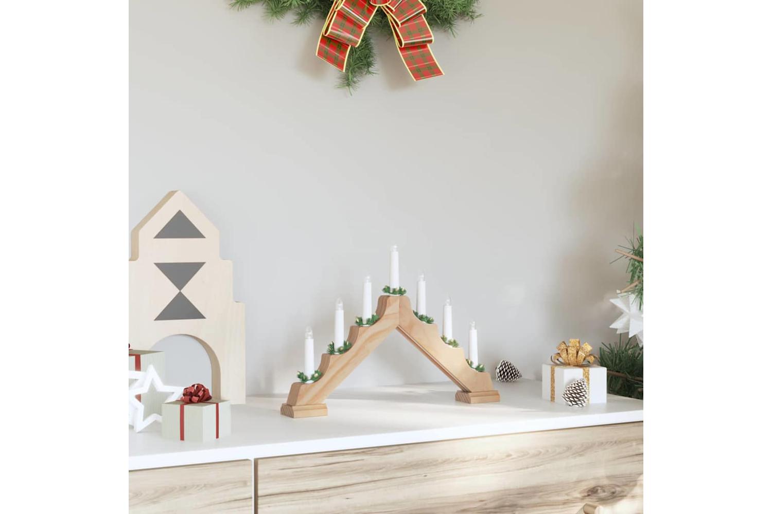 The Christmas Candle Bridge with 7 LED Candles is a gracefully crafted piece that brings sophistication and seasonal charm to your decor. Perfect for a living or dining room, its inviting warm LED lights emit a soft, cozy ambiance, capturing the festive spirit. Its traditional design complements sumptuous furnishings, making it an elegant addition to any holiday setting. The classic pine wood construction and gentle glow make it a delightful centerpiece for holiday gatherings.