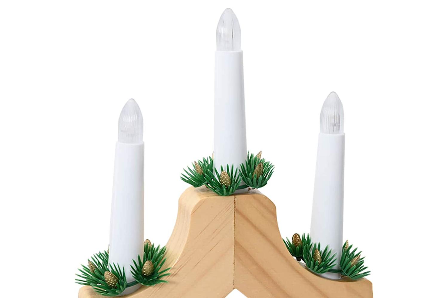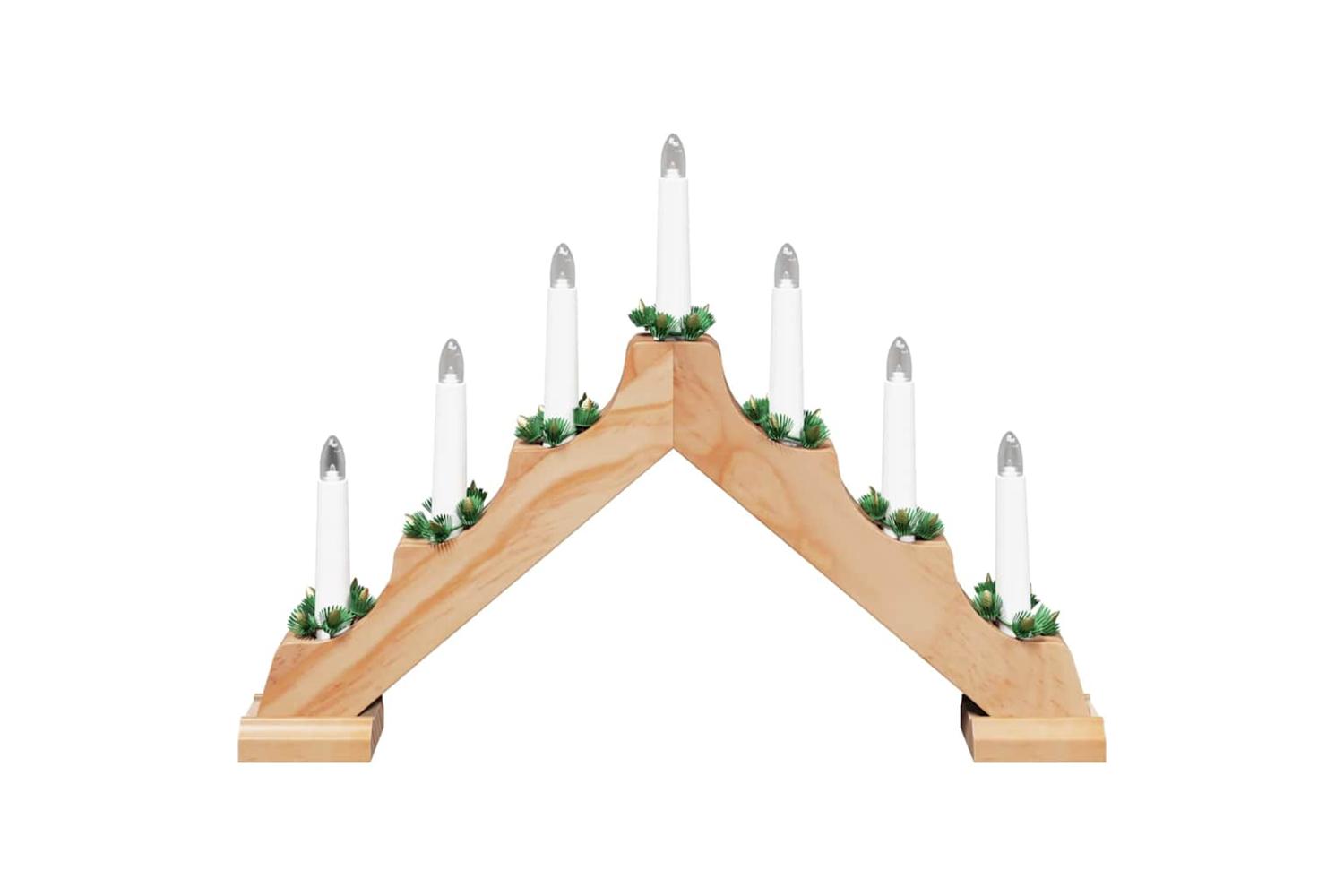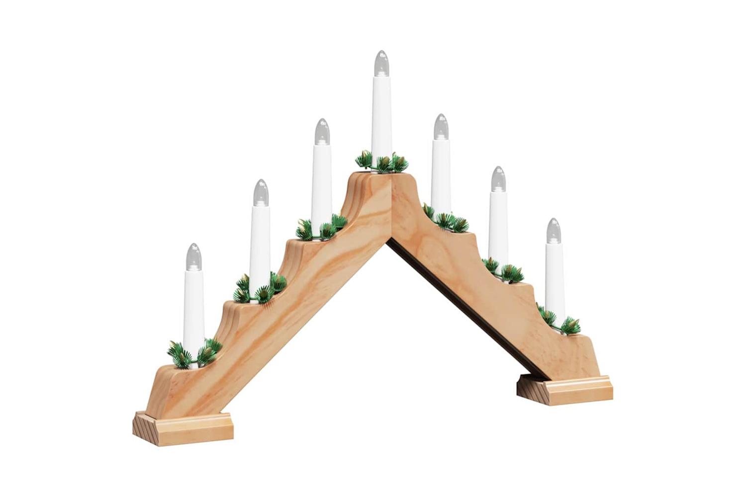 - Included Components: Featuring seven LED candles, each encased in a beautifully crafted pine wood arch, and powered by batteries. The LED lights offer an energy-efficient alternative to conventional lighting, delivering a warm, inviting glow. Coupled with a toggle switch, this allows effortless operation, bringing convenience to both set-up and enjoyment.