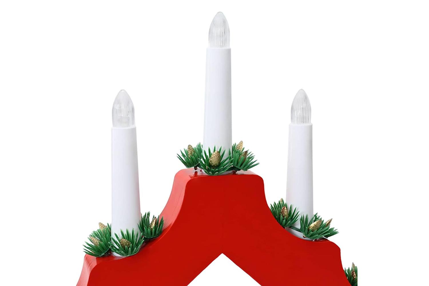 - Materials: Constructed from solid pine wood, this Christmas Candle Bridge showcases a beautiful, natural finish that enhances its traditional charm. The pine wood extends throughout the entire piece, ensuring strength and resilience through the holiday season and beyond. This selection of material pairs durability with visually pleasing aesthetics, making it a treasured holiday fixture for your living or dining room.