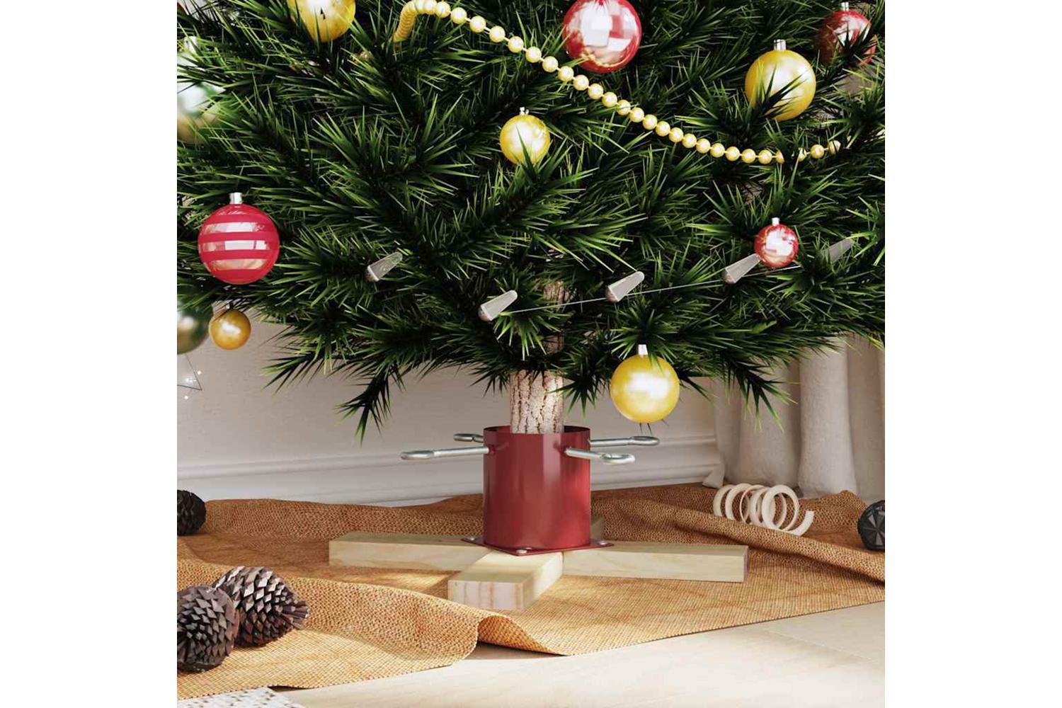- Solid Pine Construction Carefully crafted from solid pine wood, this stand boasts strength and stability required for supporting Christmas trees of various sizes. Pine wood's natural durability ensures this product withstands the weight of your festive display, providing reliable use season after season.