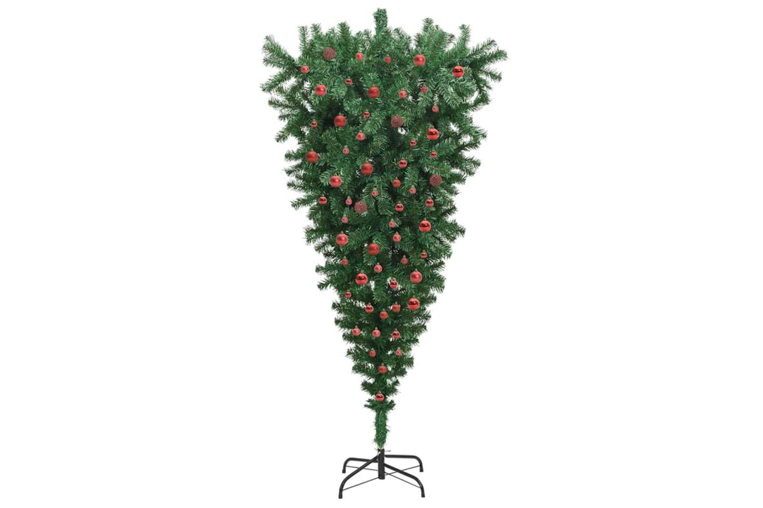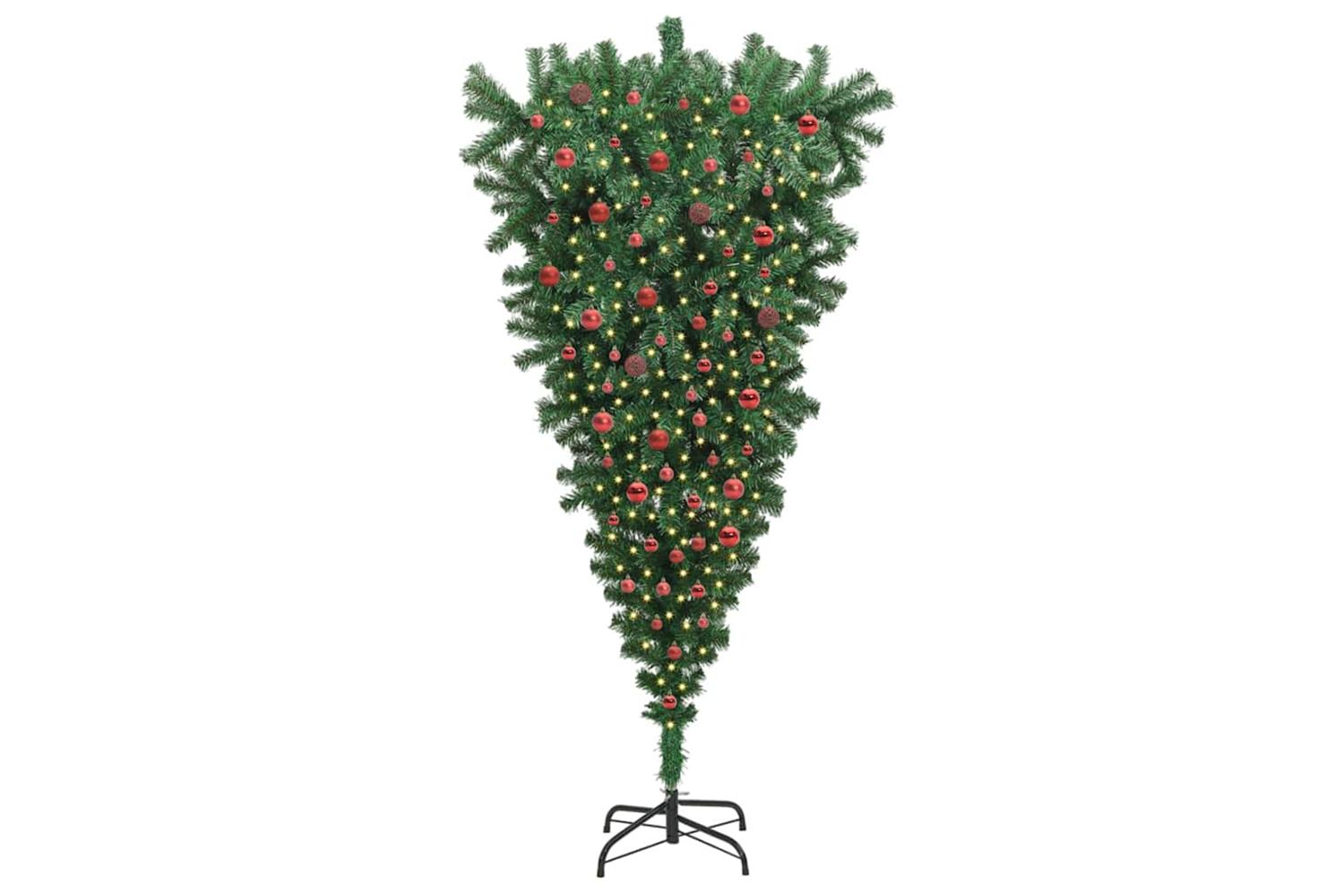 This upside-down artificial pre-lit Christmas tree offers a striking and modern twist to traditional holiday decor. Its unique inverted design is complimented by built-in LED lights, creating an eye-catching centerpiece. The tree's green PVC construction ensures a textured and lifelike appearance, making it a perfect fit for any living room environment during the holiday season. With a convenient USB connectivity feature and a reusable design, this tree is ready to enhance the festive charm of your home, offering an inventive approach to seasonal decoration.