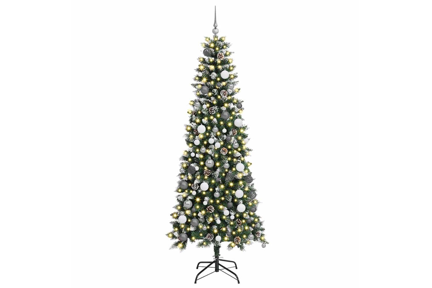 This contemporary artificial Christmas tree offers an elegant festive touch to any space. Blending modern design with holiday tradition, it serves as an ideal centerpiece for both indoor and outdoor festivities, emanating a welcoming glow.