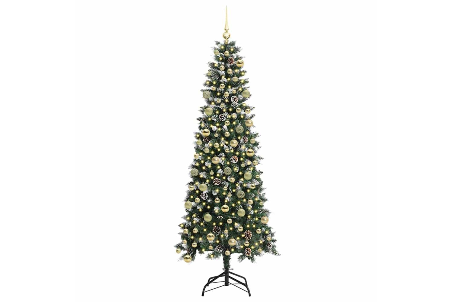 This contemporary artificial Christmas tree offers an elegant festive touch to any space. Blending modern design with holiday tradition, it serves as an ideal centerpiece for both indoor and outdoor festivities, emanating a welcoming glow.