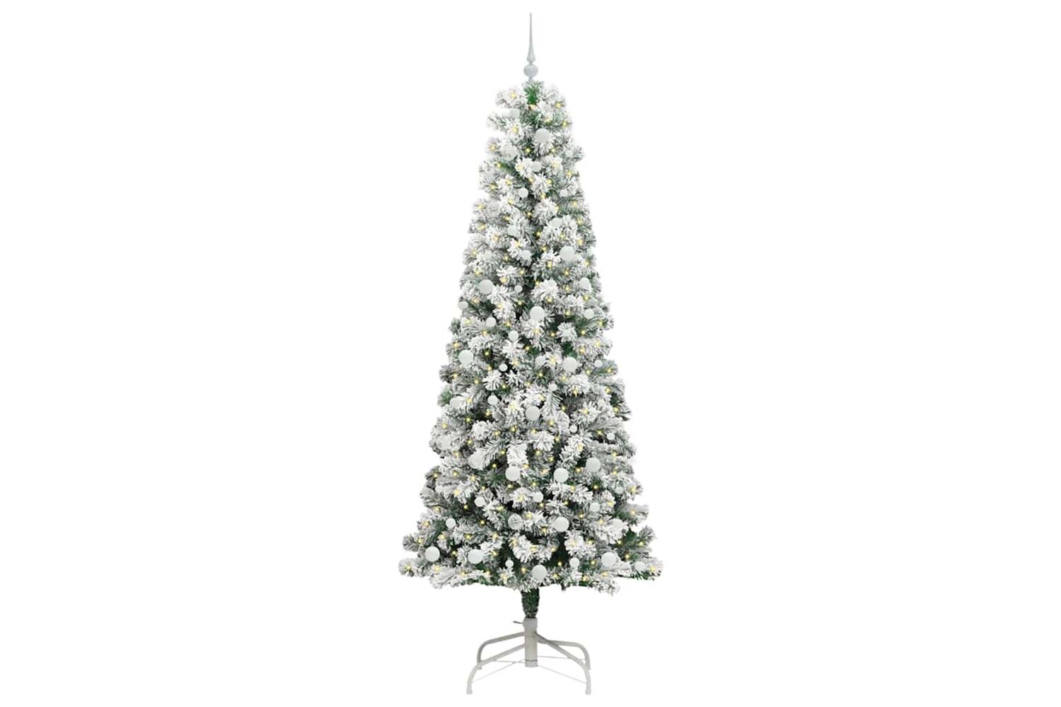 This Artificial Hinged Christmas Tree is a vision of modern festive decor. Its cone-shaped structure combines simplicity with style, sitting beautifully in any interior space like a living room. Its appealing green hue, highlighted with white, adds a subtle yet eye-catching brilliance, perfect for setting a festive mood for all ages. As it stands elegantly, it conjures a heartwarming ambiance ideal for holiday celebrations, family gatherings, or any special occasion needing a touch of holiday charm.