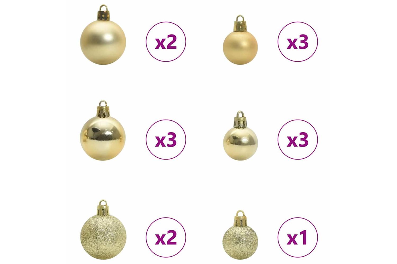 - 1xChristmastree,1xStand,1xLEDstringlight,1xPeak,20x3cmball,21x4cmball,20x6cmball