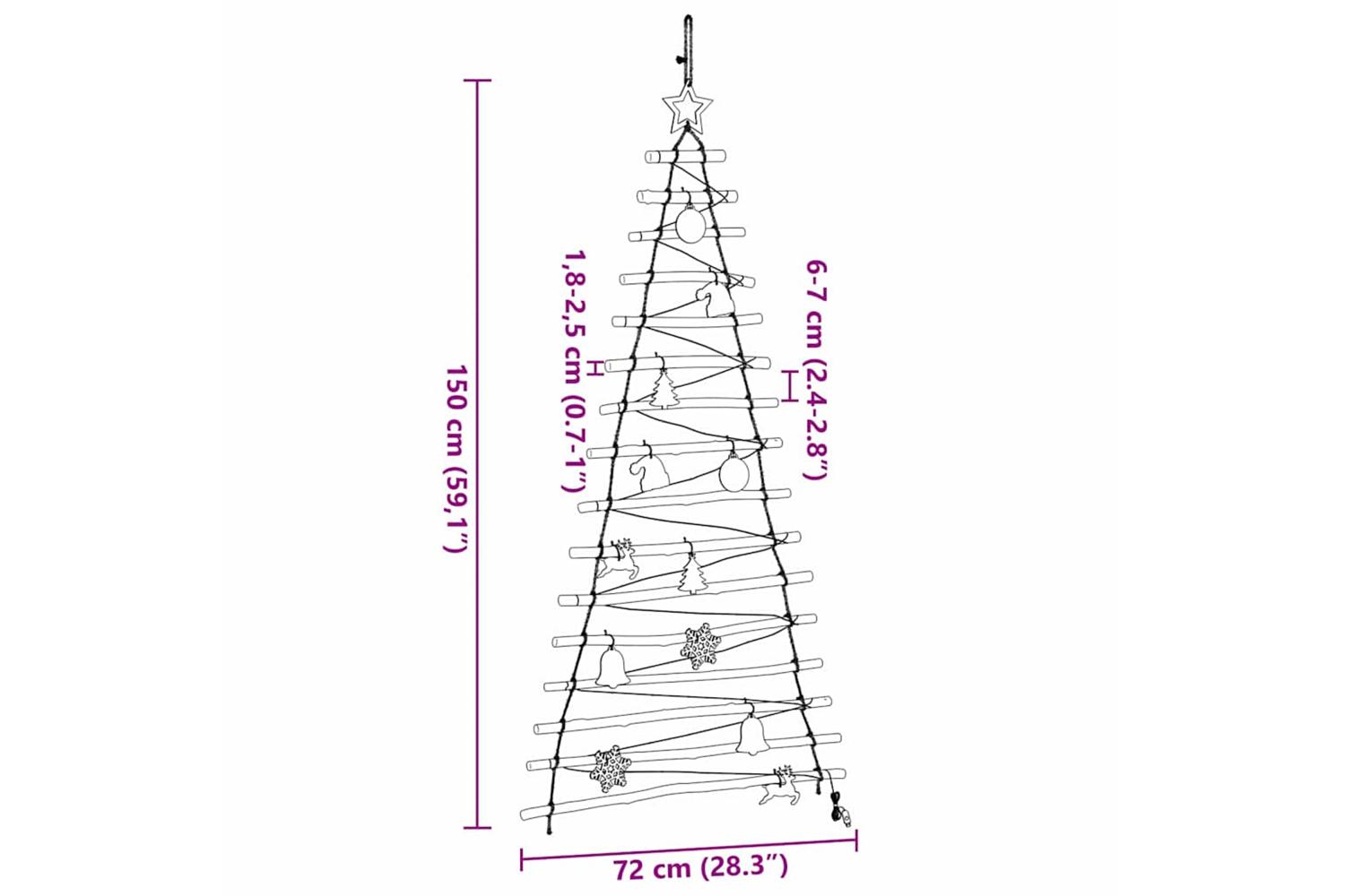 This Hanging Christmas Tree embodies elegance with its modern simplicity and charm. Designed to adorn any living room or sheltered outdoor space, this seasonal decoration offers a unique and stylish alternative to traditional Christmas trees. Suspend it with ease on walls or doors to create a festive atmosphere that captivates the senses, blending practicality with a touch of nature.