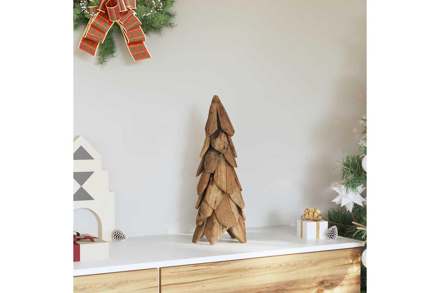 The Modern Christmas Tree serves as a stunning centerpiece in your holiday decor, combining rustic charm with modern elegance. Crafted from solid teak wood and featuring a simplistic yet eye-catching design, it exudes a natural allure that appeals to those who appreciate a touch of refined rusticity. Its solid build and materials make this decoration more than just a seasonal feature; it's an emblem of style and sophistication for your living room or hallway, enhancing the ambience with its timeless presence.