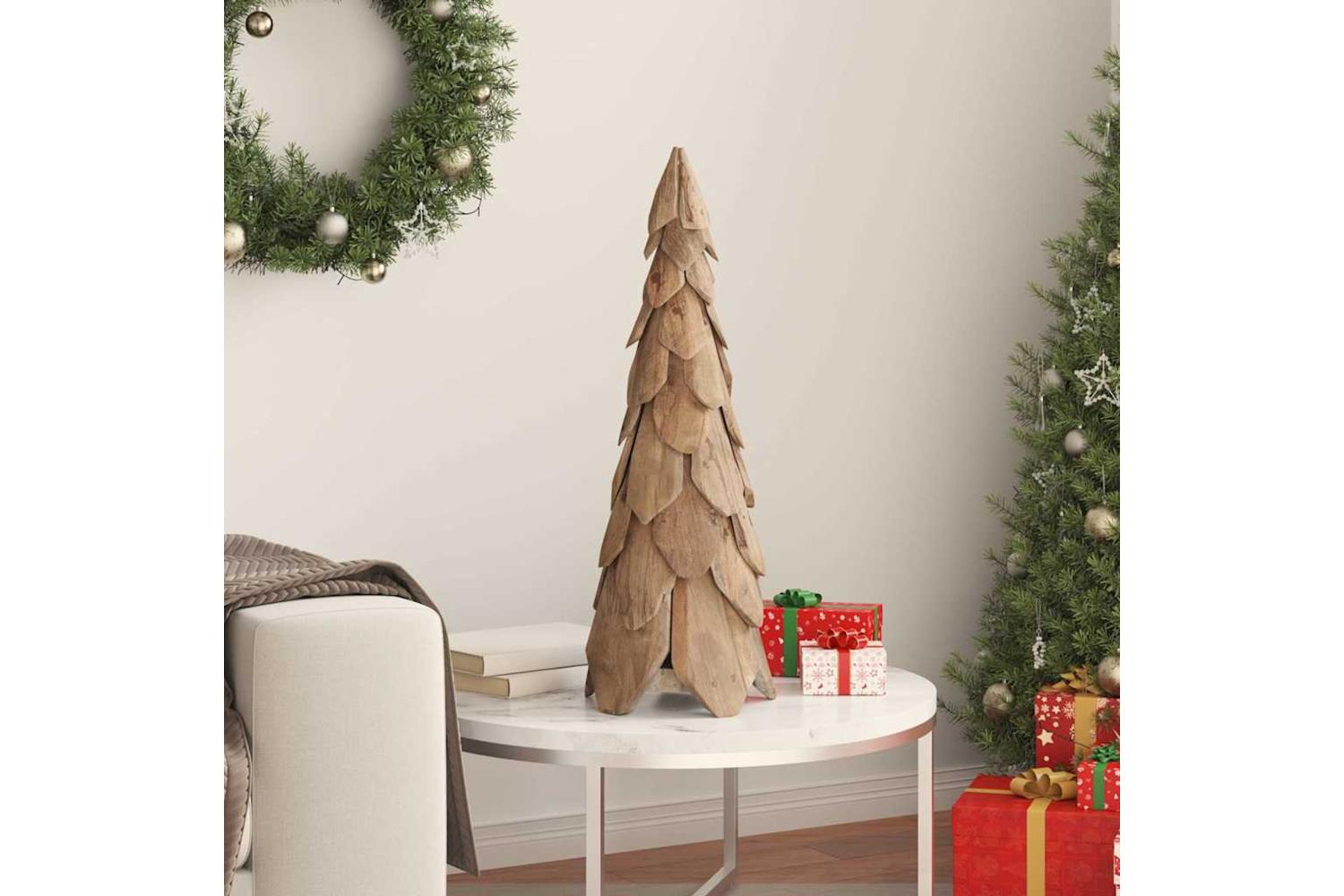 - Materials: Constructed from solid teak wood, this modern Christmas tree is renowned for its strength and natural aesthetic. Teak's inherent durability ensures that the tree can withstand seasonal display, staying vibrant and sturdy year after year. Its rich color adds warmth and depth to your seasonal arrangements.