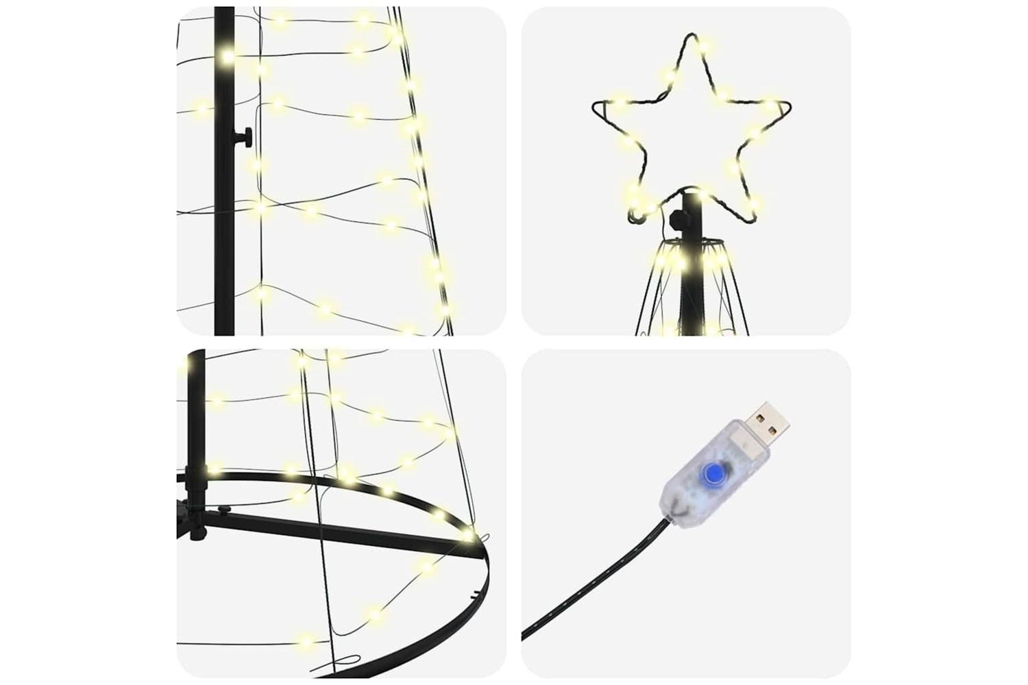 - Included Stylish Components: The package contains a star frame, center post, LED light string, and a pack of ground spikes. Each component plays a role in supporting and illuminating the tree, creating a cohesive and polished festive display.