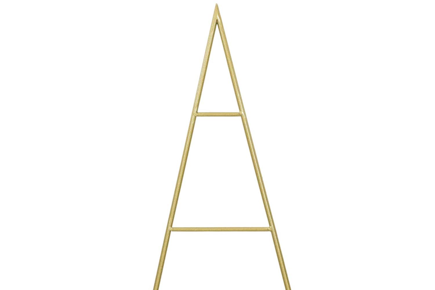 This Modern Metal Christmas tree exemplifies contemporary elegance, combining the simplicity of minimalist design with the charm of holiday cheer. Styled in a gleaming gold hue and a matte finish, it presents a tasteful blend of style and simplicity suited for any modern home setting. Its sleek form and contour make it an ideal centerpiece for living rooms or hallways, blending seamlessly into any seasonal decor scheme. Tailored for the modern holiday enthusiast, it projects a festive yet understated aura that is both captivating and inviting.
