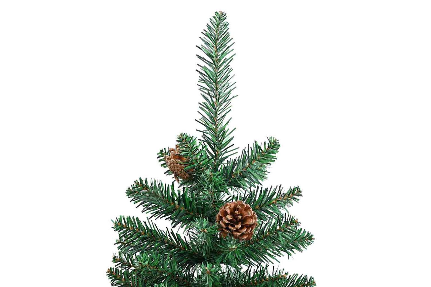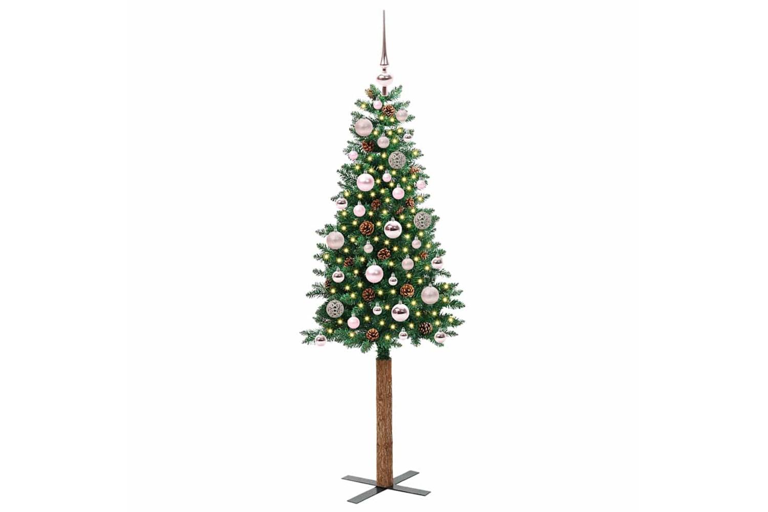 - Decorative with pine cones and ornament balls, Lifelike branch tips, Real wood trunk