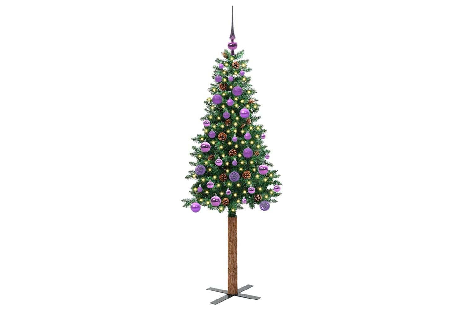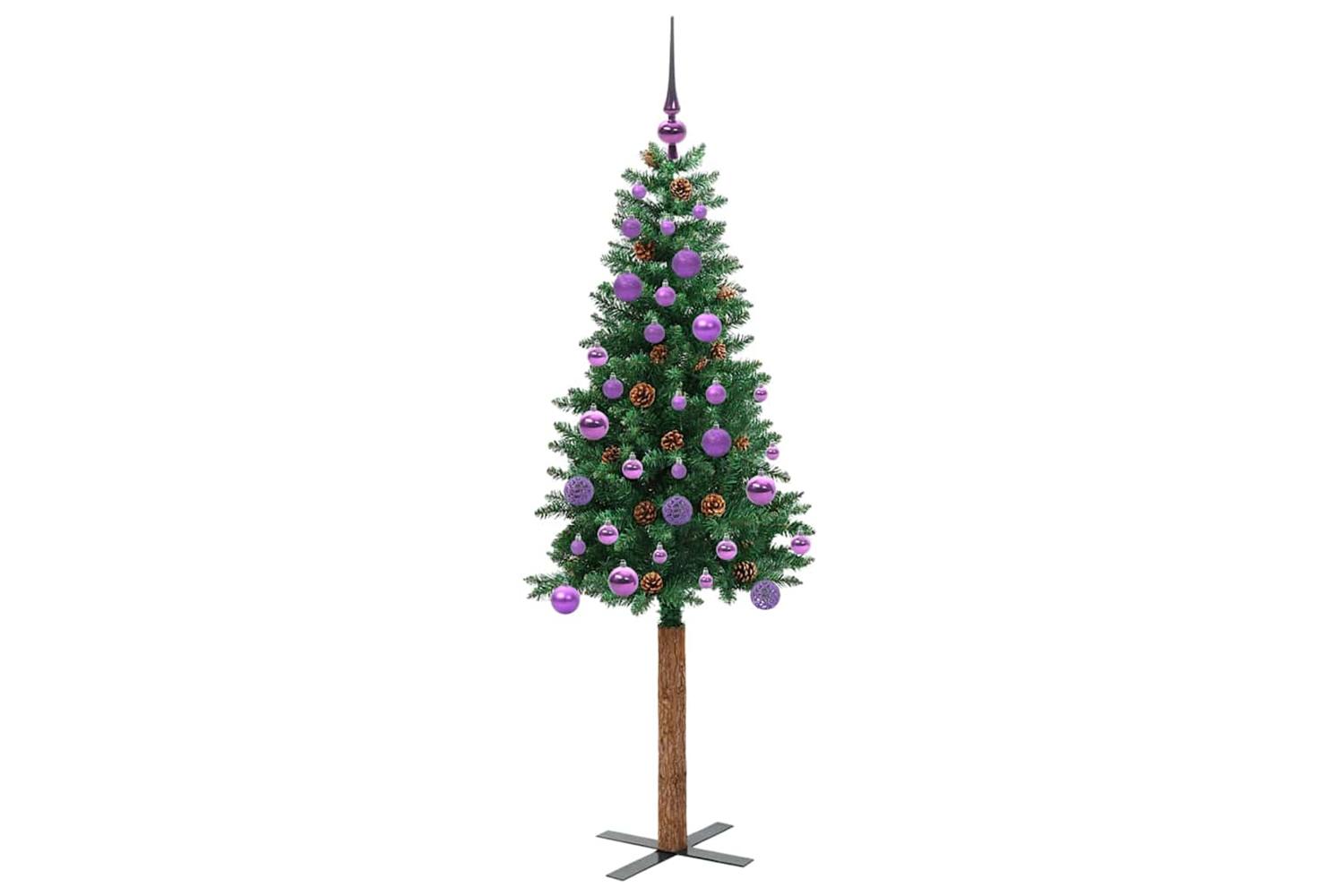 - Decorative with pine cones and ornament balls, Lifelike branch tips, Real wood trunk