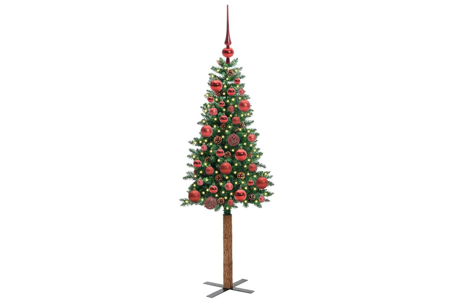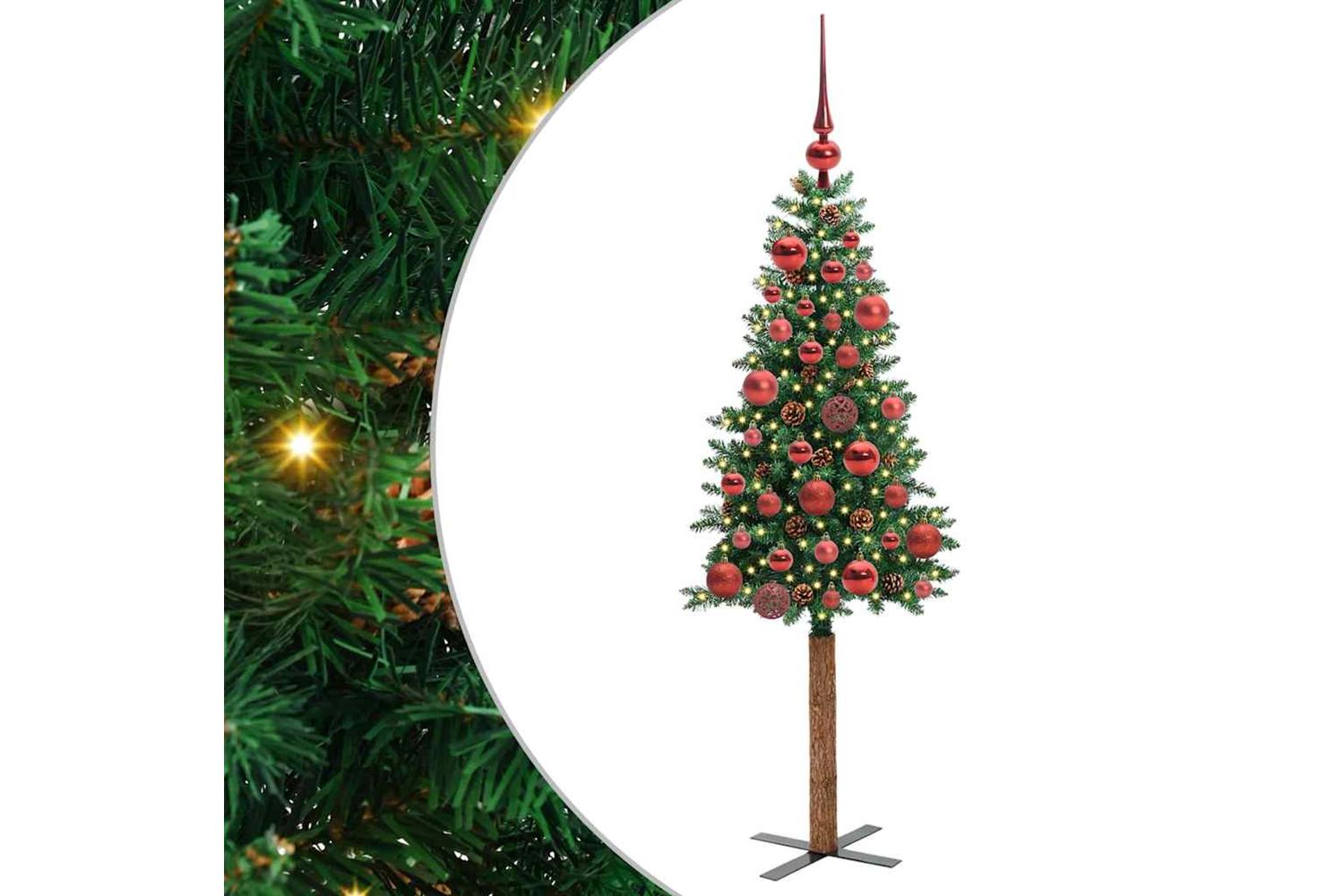 - Decorative with pine cones and ornament balls, Lifelike branch tips, Real wood trunk