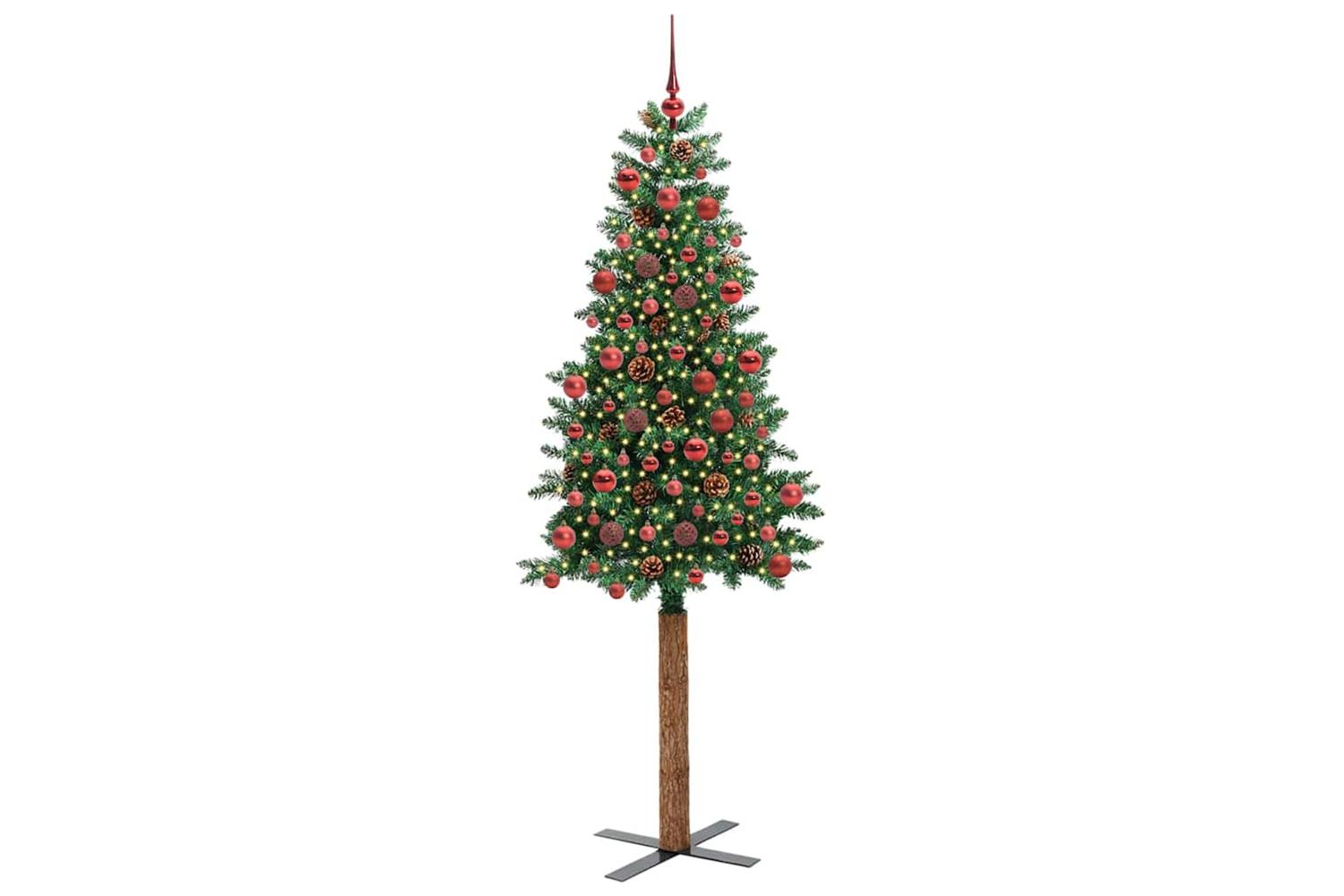 - Decorative with pine cones and ornament balls, Lifelike branch tips, Real wood trunk