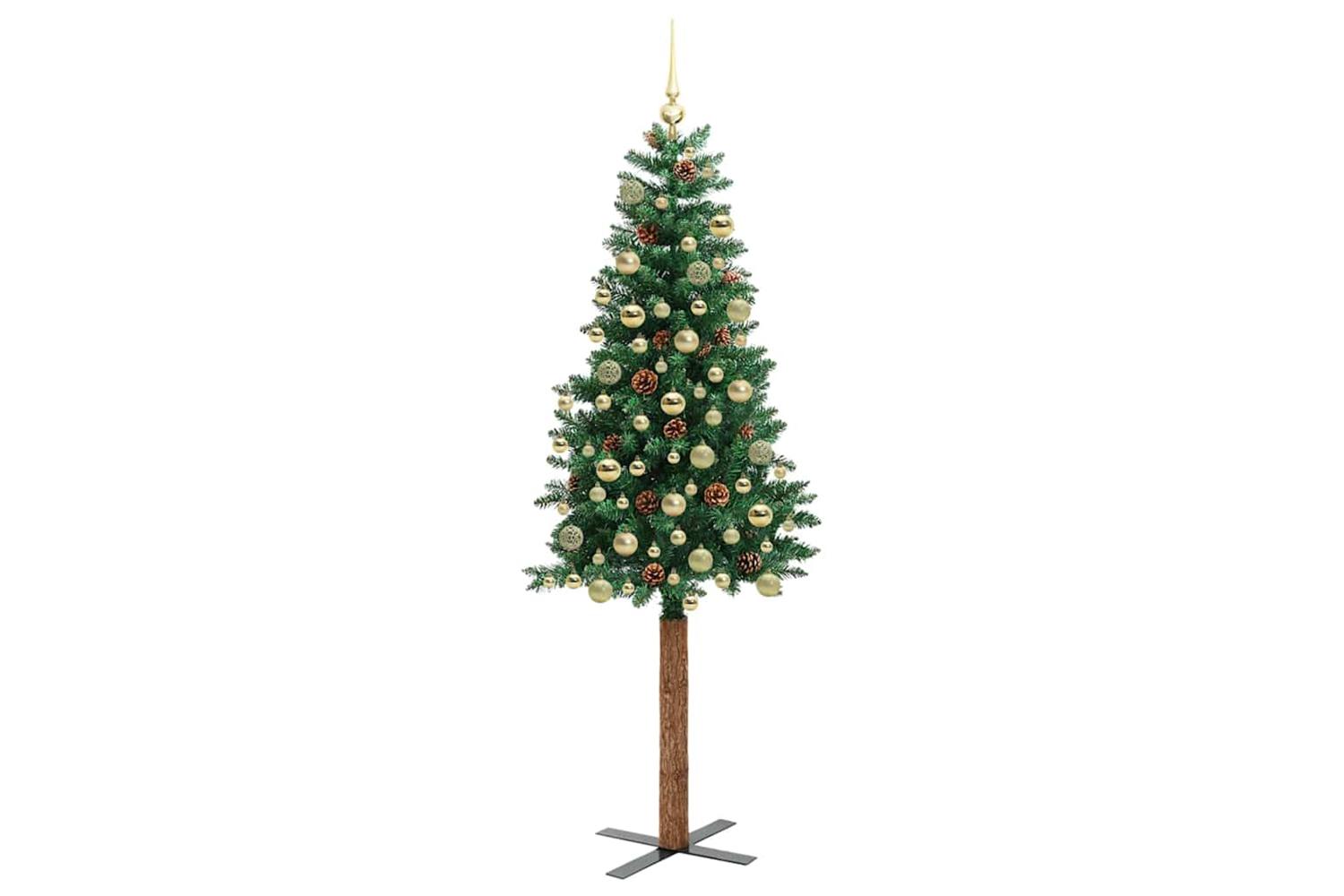 - Decorative with pine cones and ornament balls, Lifelike branch tips, Real wood trunk