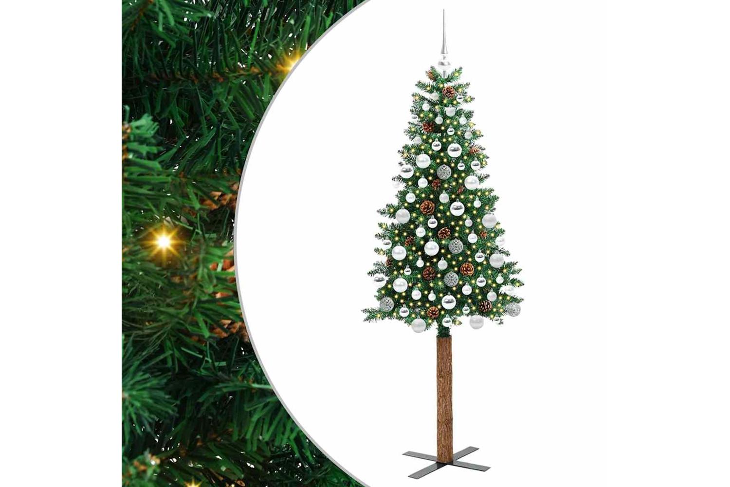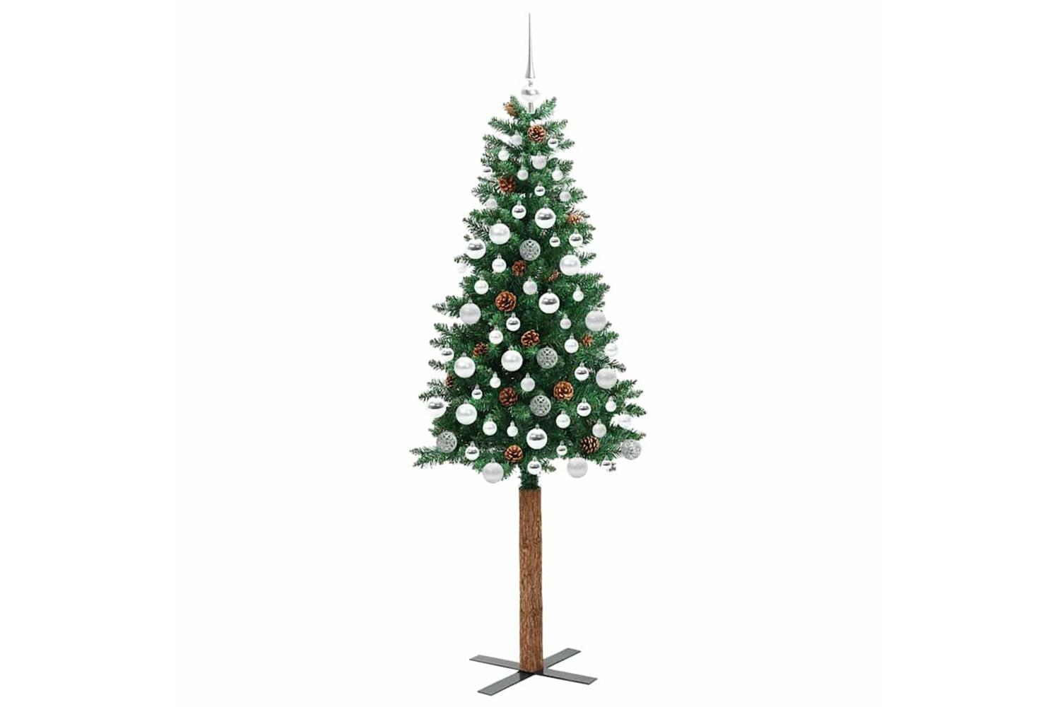 - Decorative with pine cones and ornament balls, Lifelike branch tips, Real wood trunk