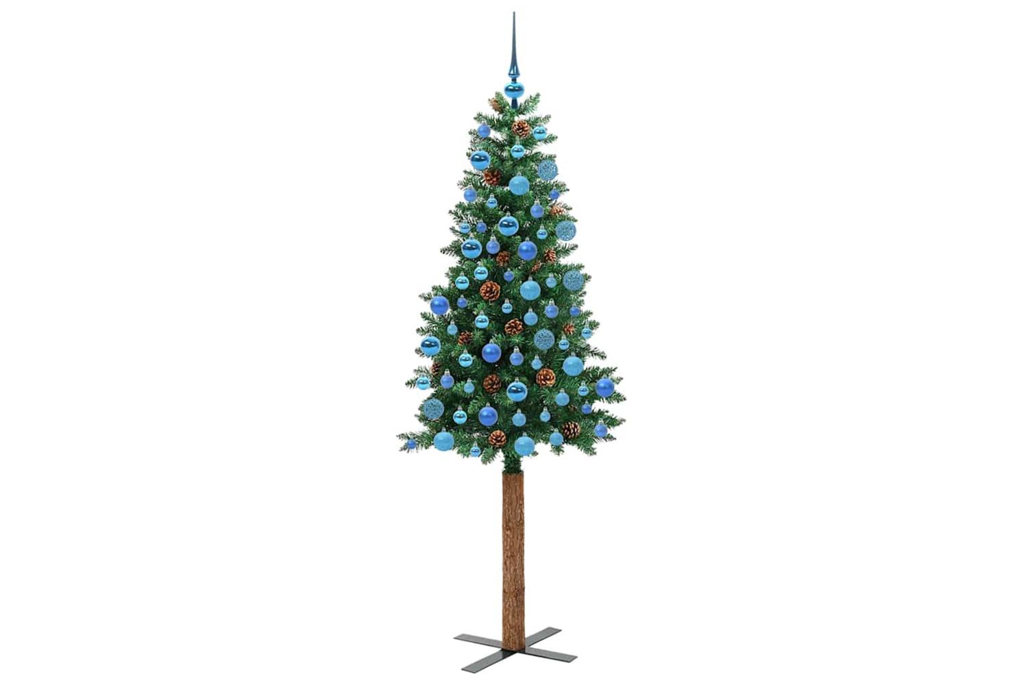 - Decorative with pine cones and ornament balls, Lifelike branch tips, Real wood trunk