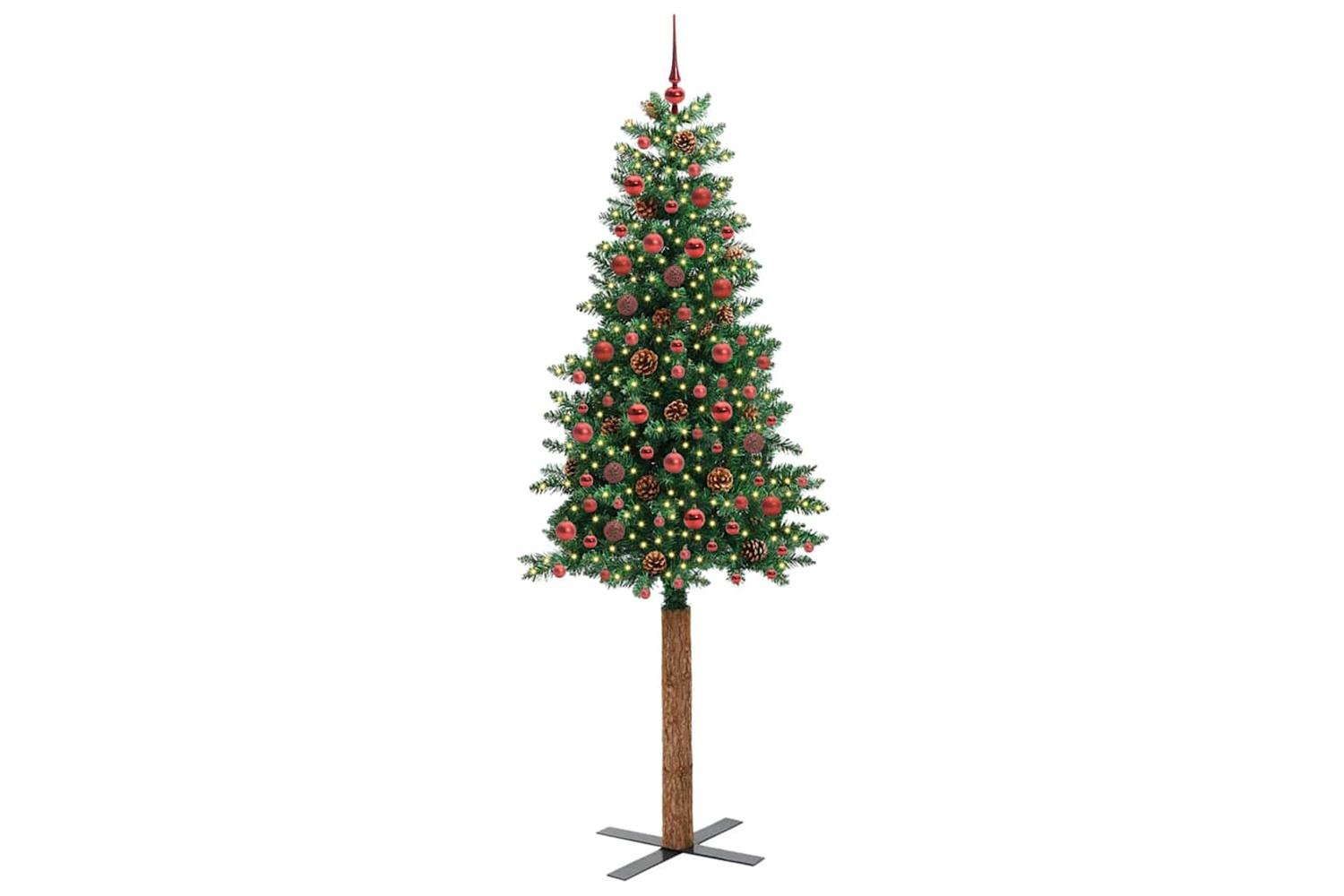 - Decorative with pine cones and ornament balls, Lifelike branch tips, Real wood trunk