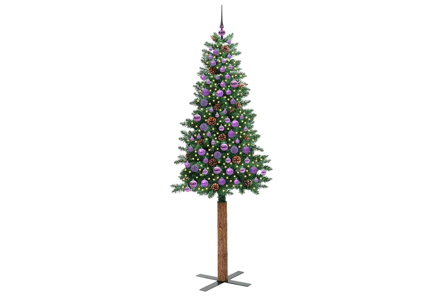 - Decorative with pine cones and ornament balls, Lifelike branch tips, Real wood trunk