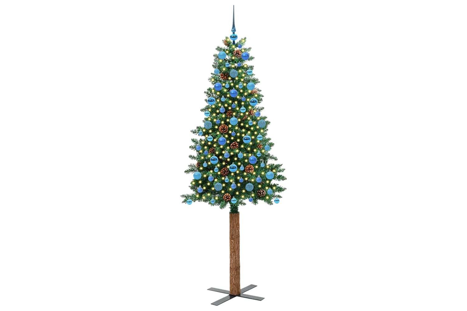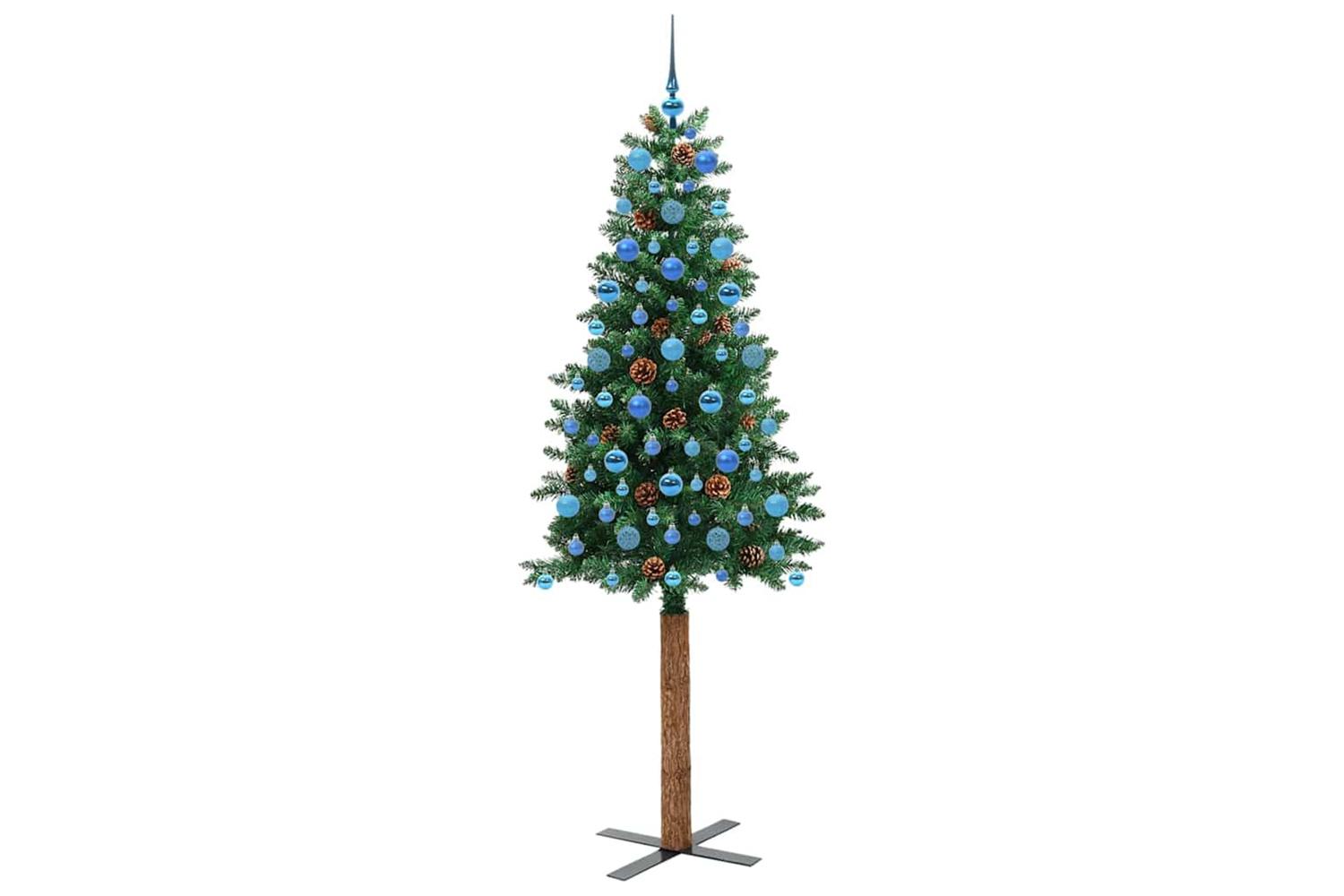 - Decorative with pine cones and ornament balls, Lifelike branch tips, Real wood trunk