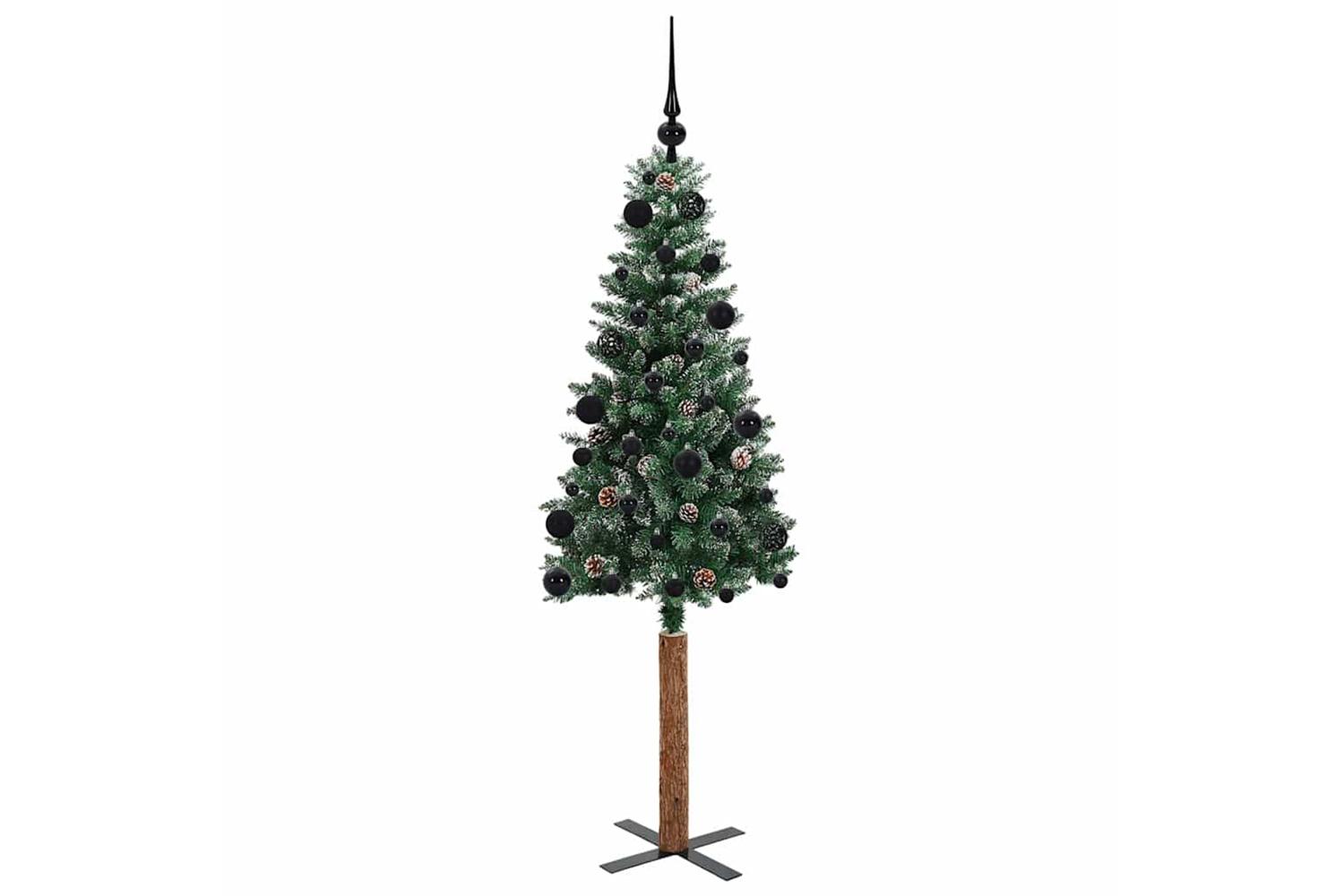 - Decorative with pine cones and ornament balls, Lifelike branch tips with frosted snow, Real wood trunk
