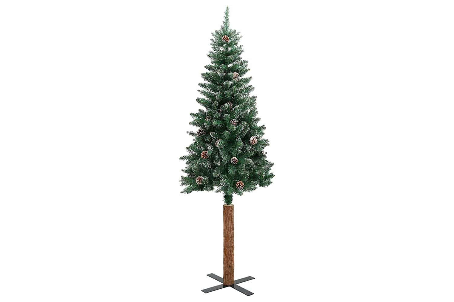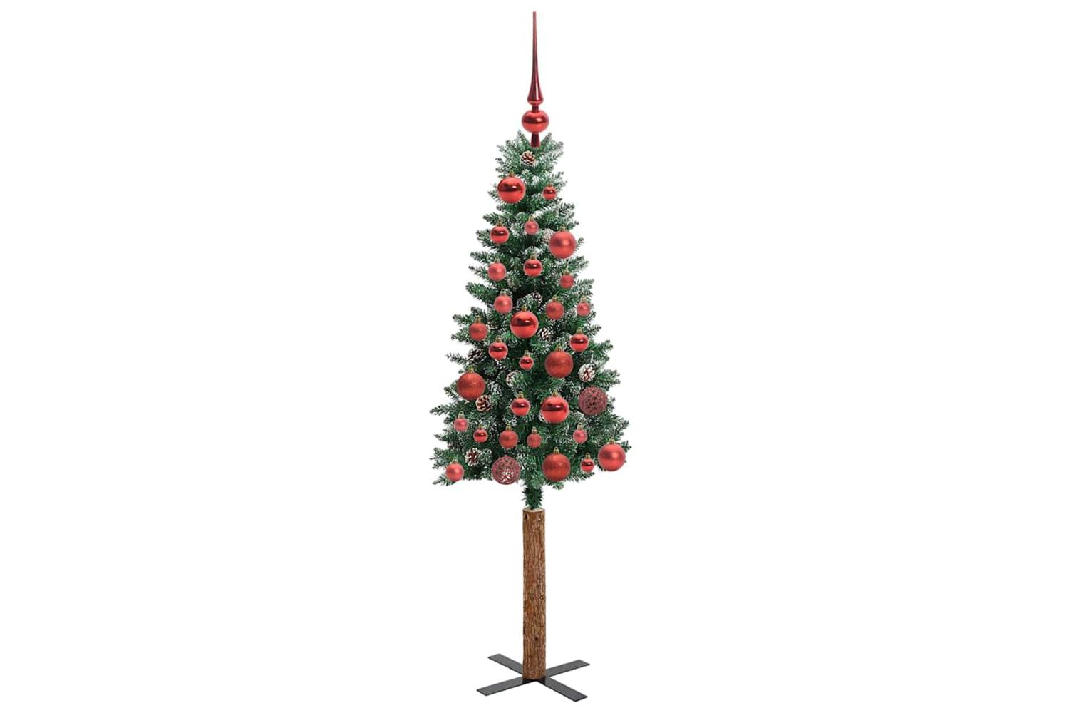 - Decorative with pine cones and ornament balls, Lifelike branch tips with frosted snow, Real wood trunk