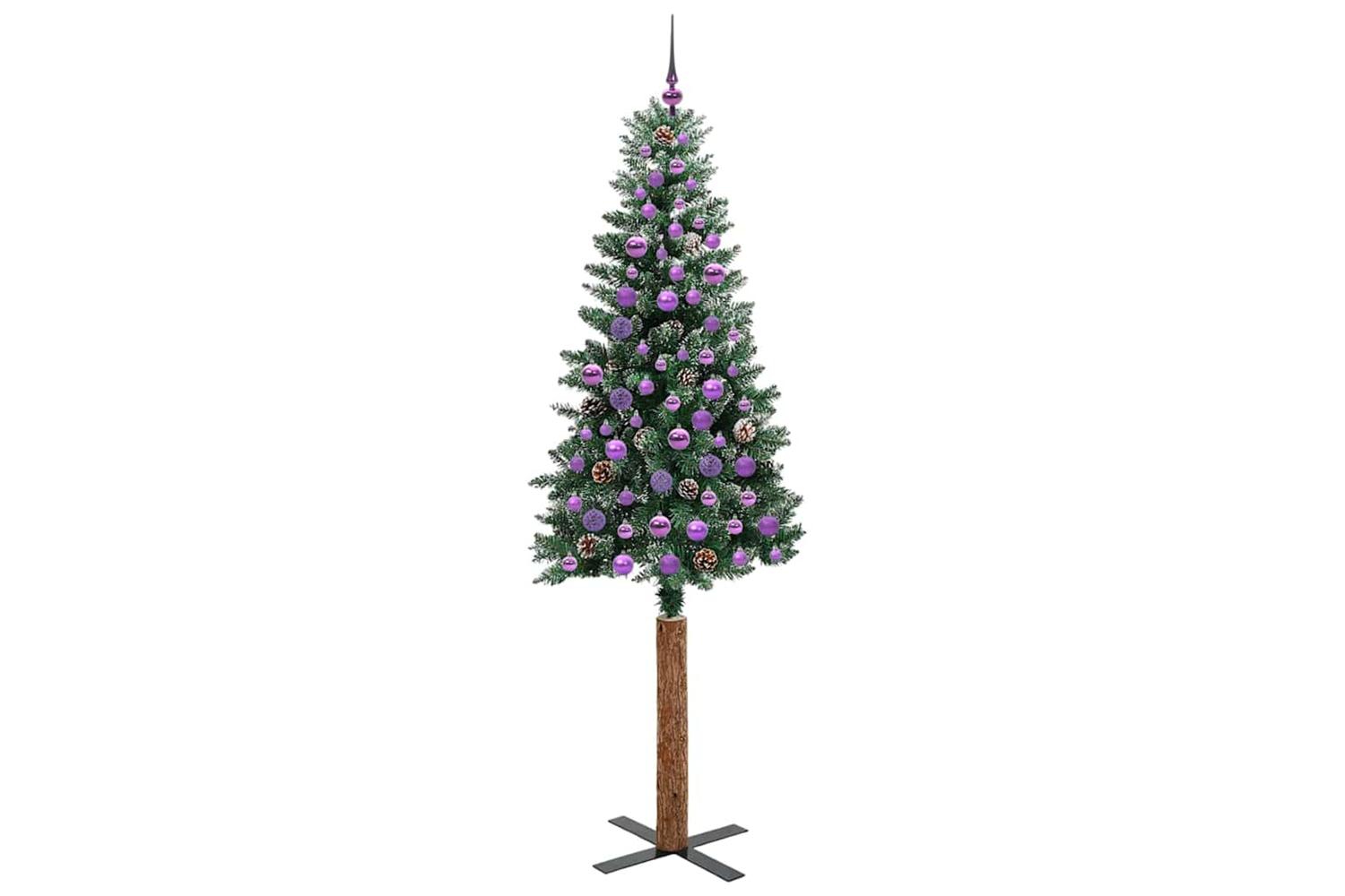 - Decorative with pine cones and ornament balls, Lifelike branch tips with frosted snow, Real wood trunk