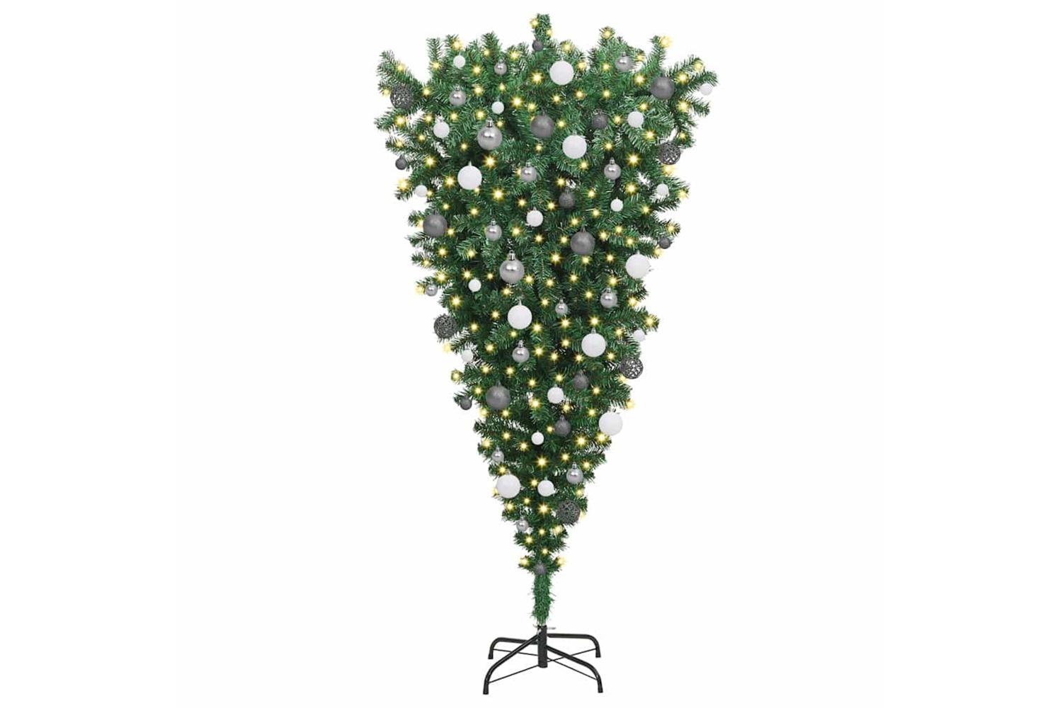 This upside-down artificial pre-lit Christmas tree offers a striking and modern twist to traditional holiday decor. Its unique inverted design is complimented by built-in LED lights, creating an eye-catching centerpiece. The tree's green PVC construction ensures a textured and lifelike appearance, making it a perfect fit for any living room environment during the holiday season. With a convenient USB connectivity feature and a reusable design, this tree is ready to enhance the festive charm of your home, offering an inventive approach to seasonal decoration.