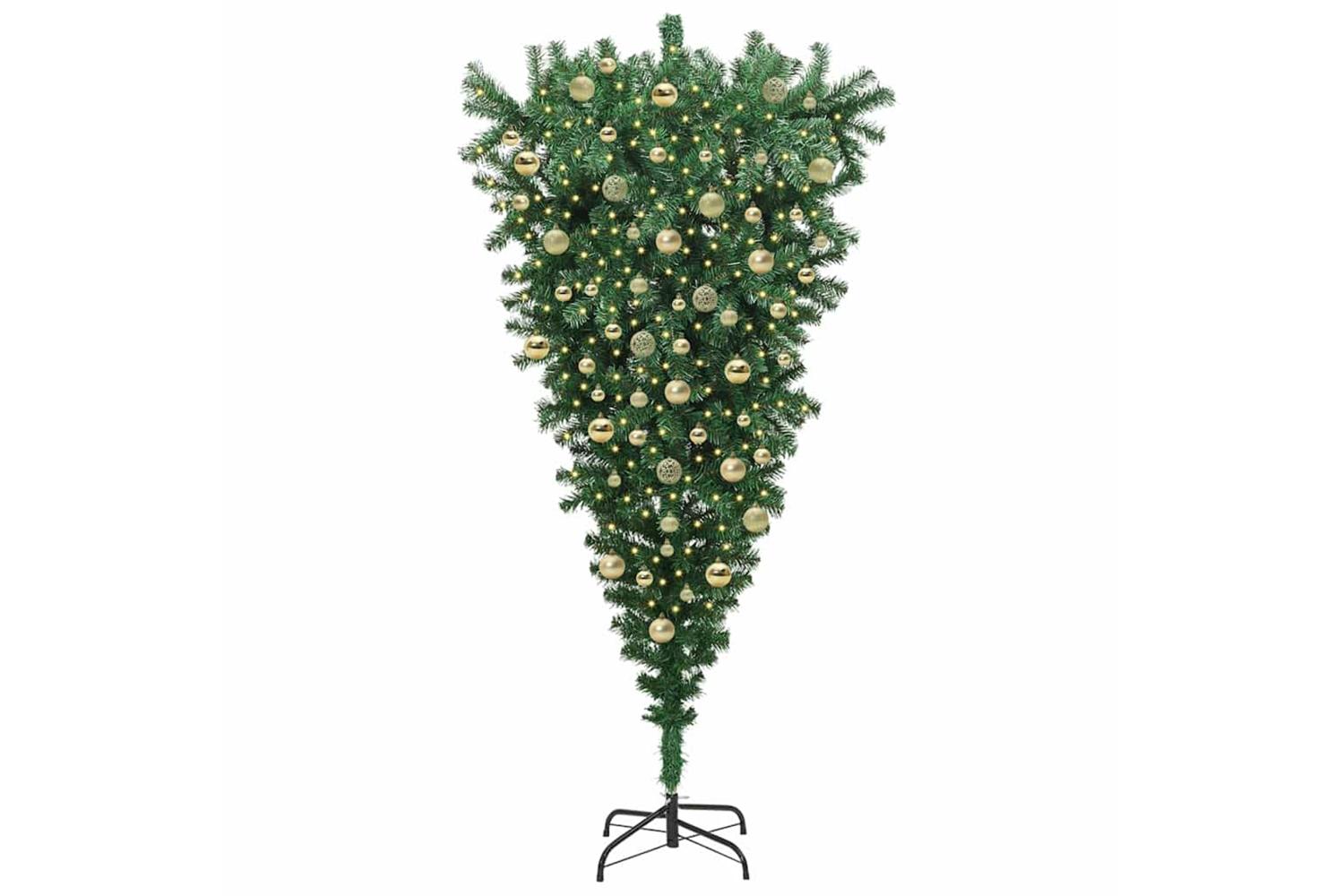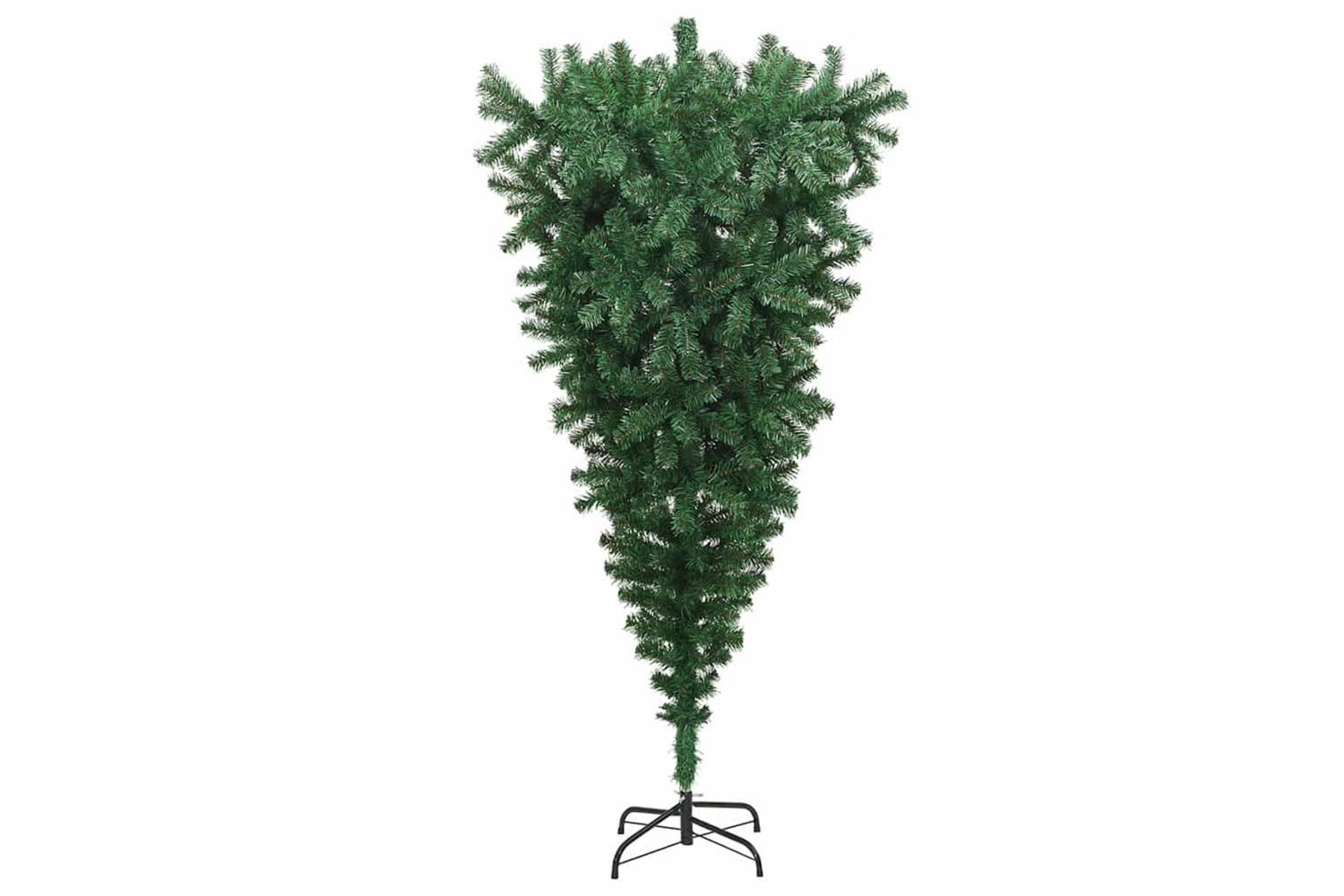 This upside-down artificial pre-lit Christmas tree offers a striking and modern twist to traditional holiday decor. Its unique inverted design is complimented by built-in LED lights, creating an eye-catching centerpiece. The tree's green PVC construction ensures a textured and lifelike appearance, making it a perfect fit for any living room environment during the holiday season. With a convenient USB connectivity feature and a reusable design, this tree is ready to enhance the festive charm of your home, offering an inventive approach to seasonal decoration.