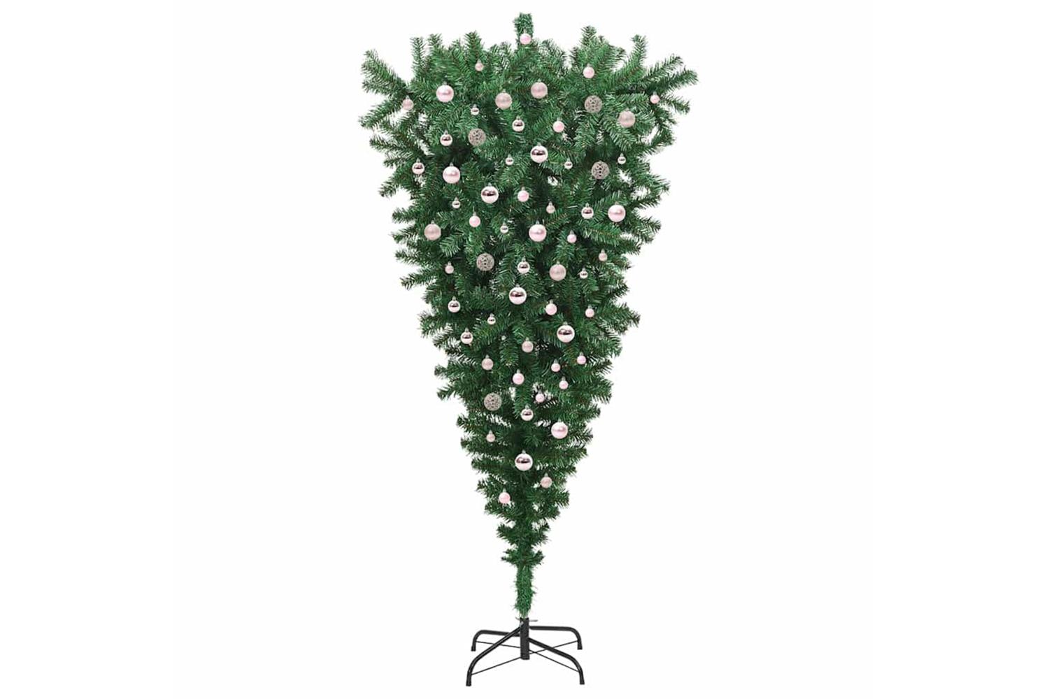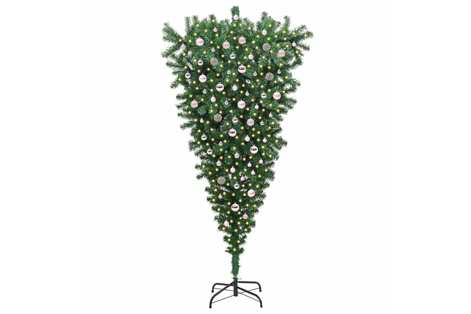 This upside-down artificial pre-lit Christmas tree offers a striking and modern twist to traditional holiday decor. Its unique inverted design is complimented by built-in LED lights, creating an eye-catching centerpiece. The tree's green PVC construction ensures a textured and lifelike appearance, making it a perfect fit for any living room environment during the holiday season. With a convenient USB connectivity feature and a reusable design, this tree is ready to enhance the festive charm of your home, offering an inventive approach to seasonal decoration.