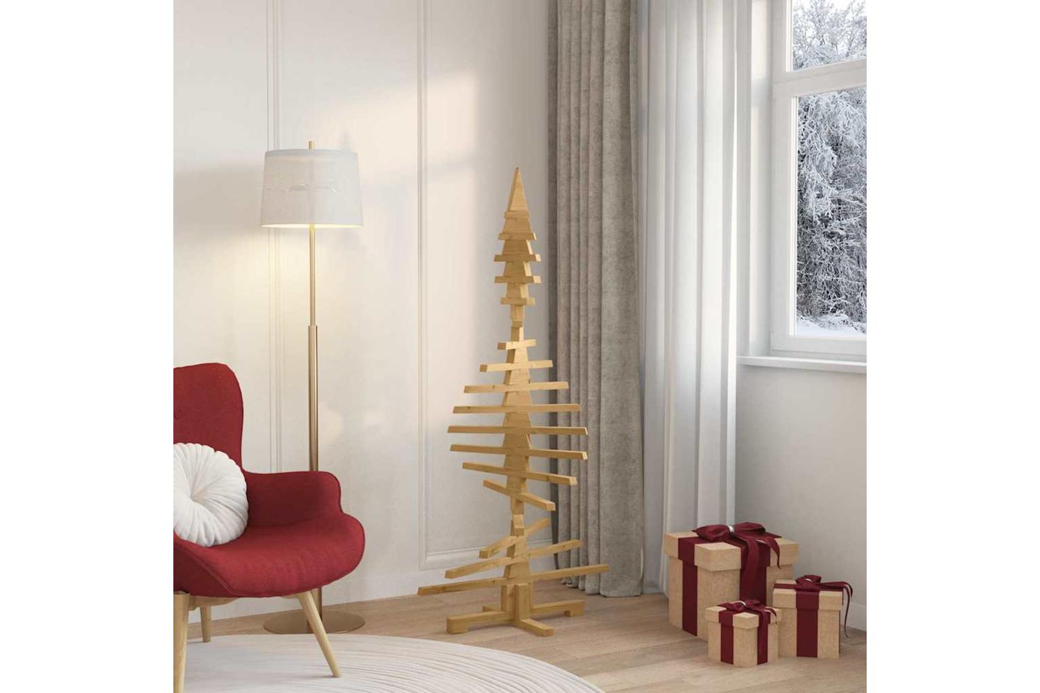 - Solid Pine Wood: Crafted from solid pine wood, this tree provides a robust and enduring structure, ensuring it remains a staple of your festive decorations for years to come. Its natural, smooth texture adds an elegant yet understated charm that complements a variety of decor styles.
