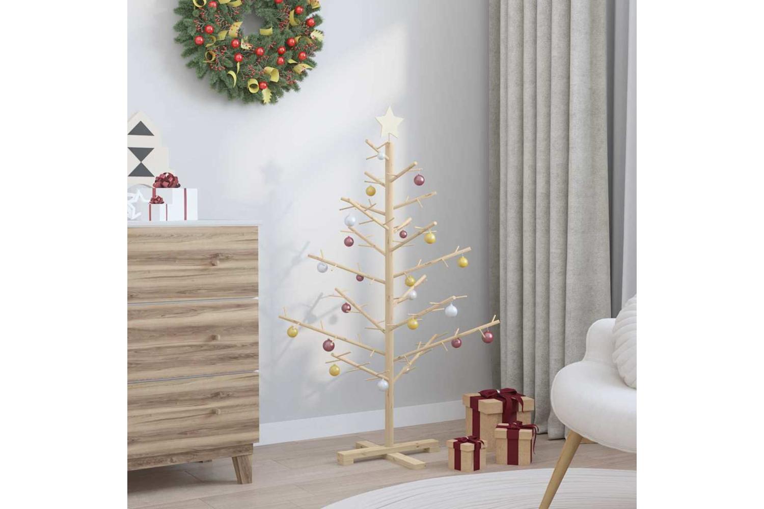 Vidaxl Wooden Christmas Tree With Stand Natural 125 Cm Solid Pine Wood